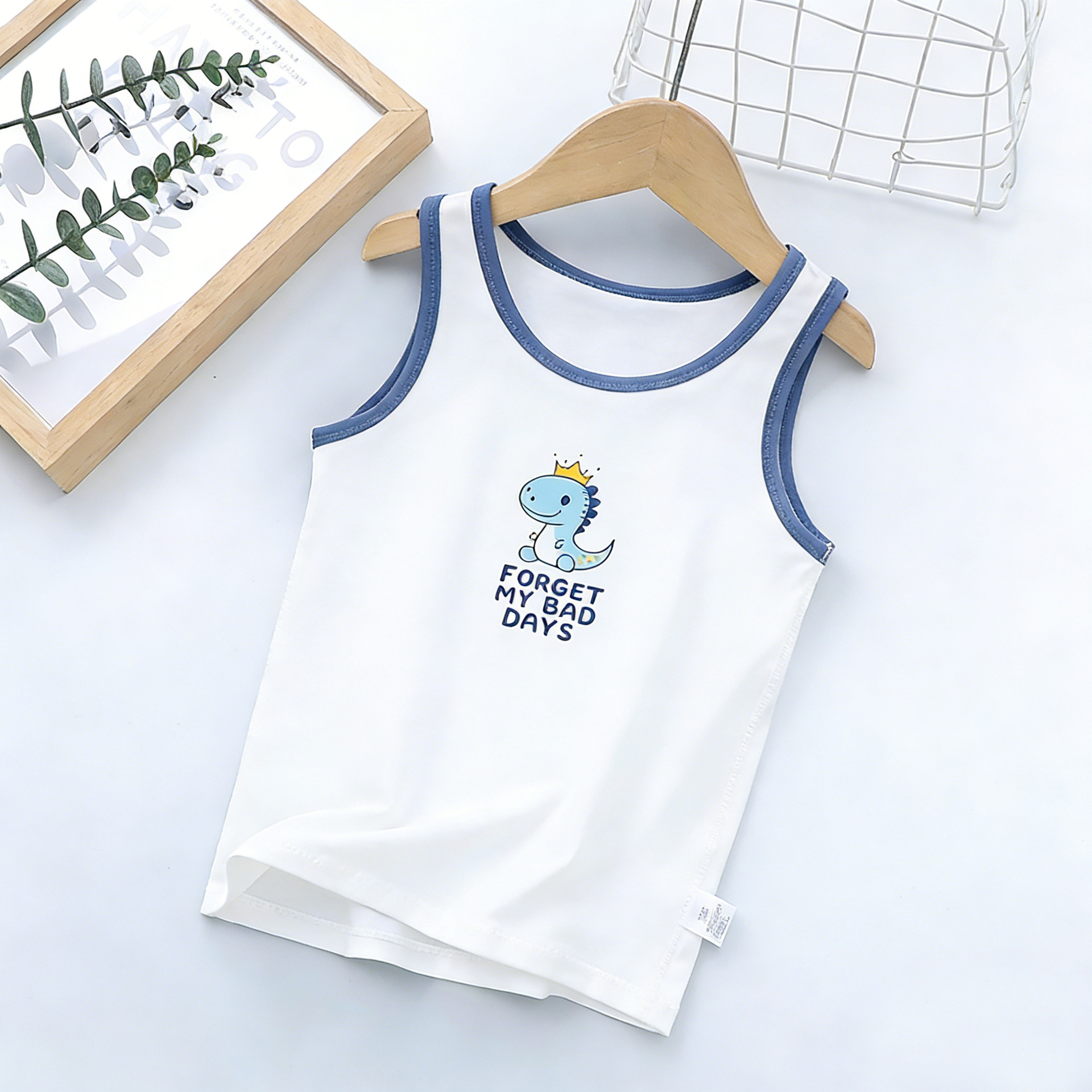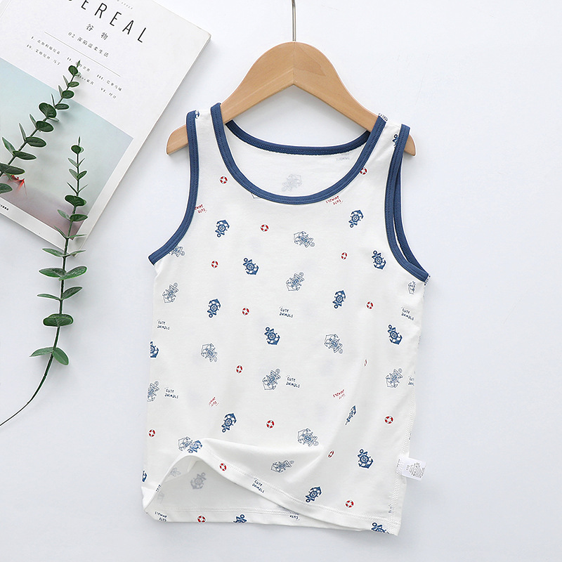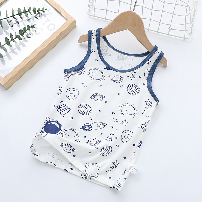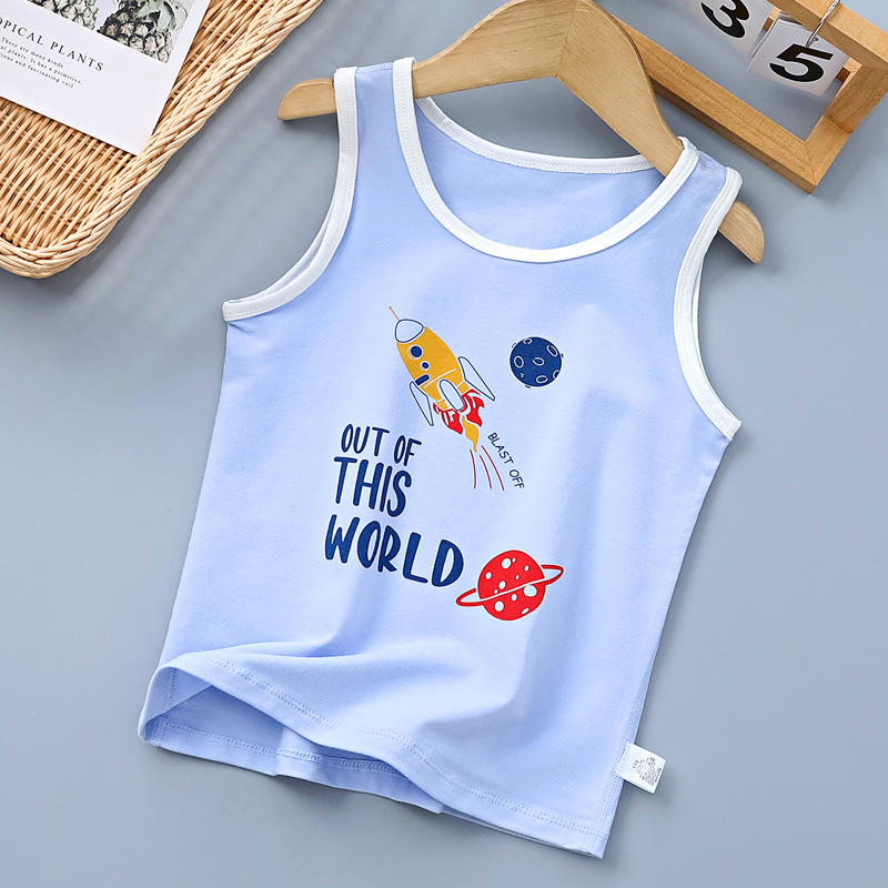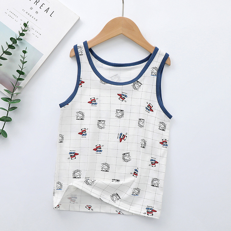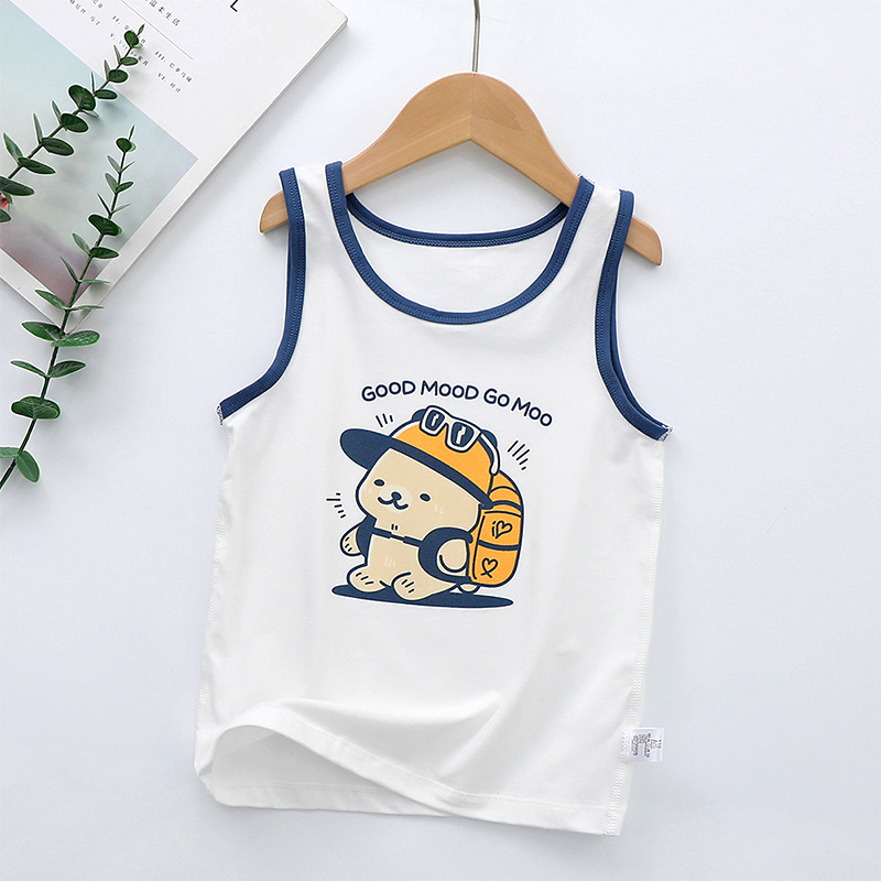 2025 новый летний детский жилет без косточек с мультяшным принтом из чистого хлопка для мальчиков, простой топ без рукавов