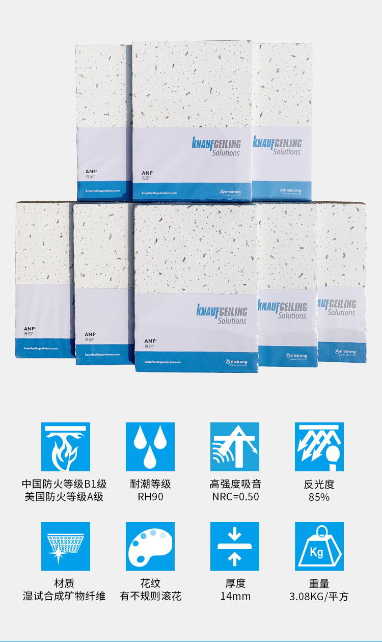 Подвесной потолок из минеральной ваты Плита из минеральной ваты Armstrong Yali RH90 влагостойкий звукопоглощающий офисный подвесной потолочный потолок