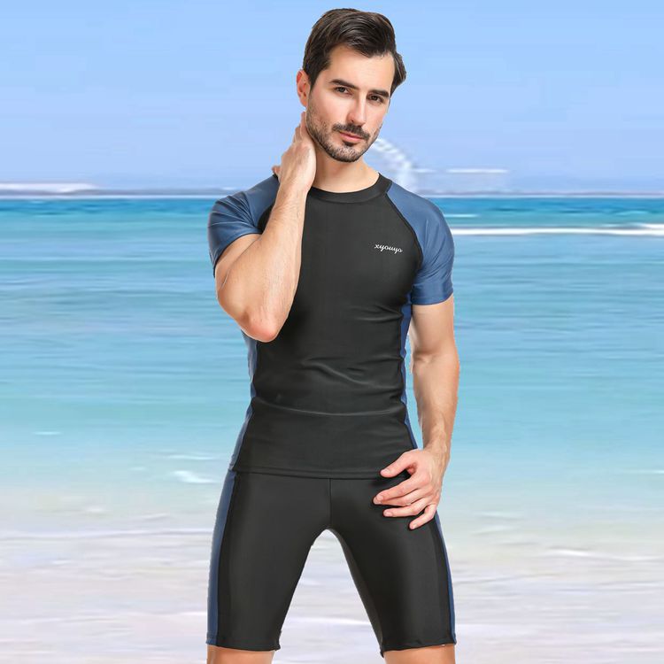 Купальный костюм мужской тренировочный купальный костюм спортивный Сплит плюс размер плавки пять точек солнцезащитный костюм пляжный плавательный Топ