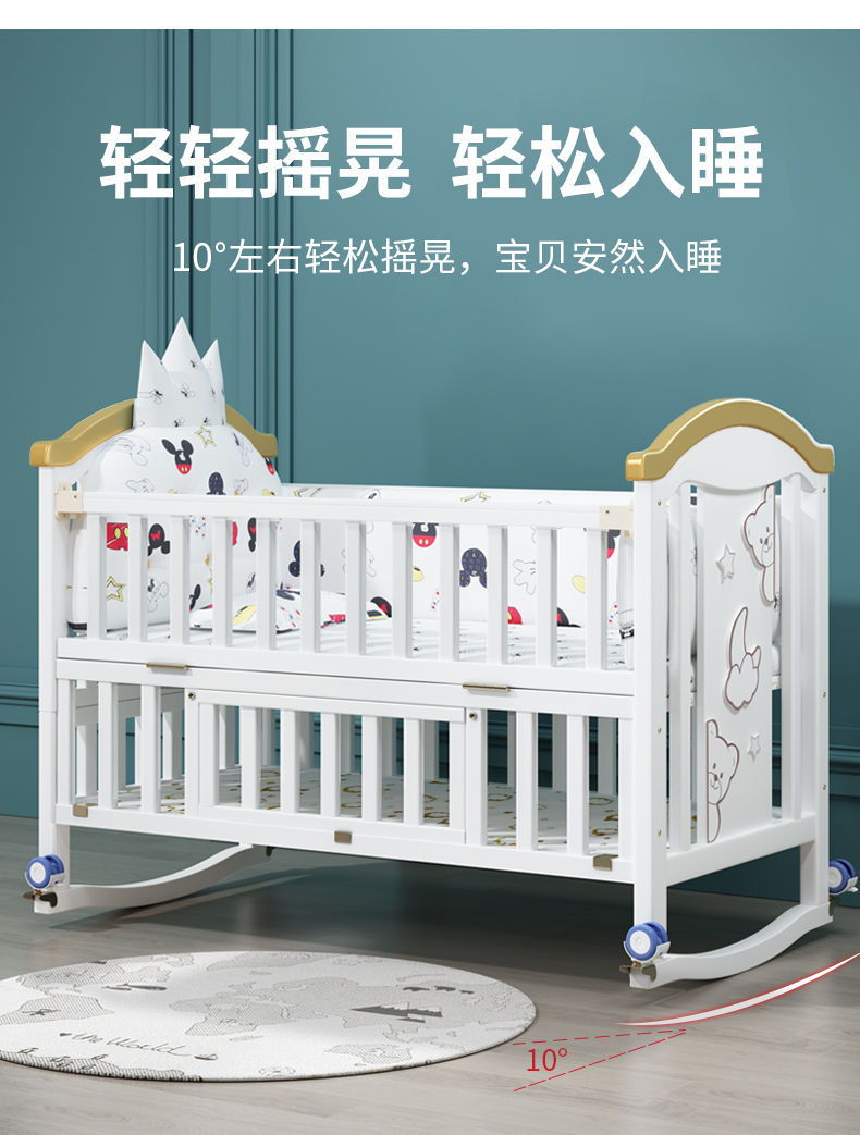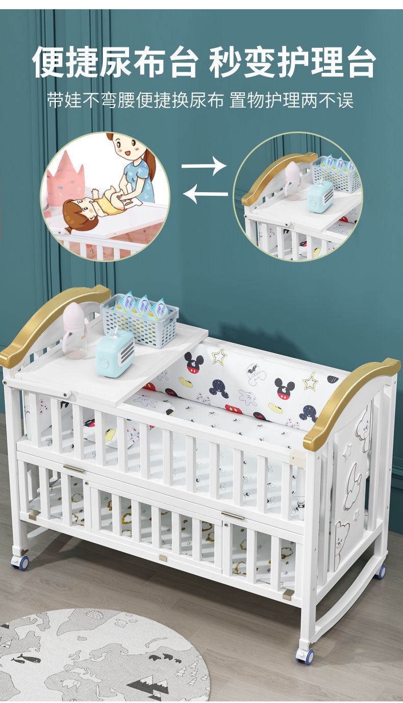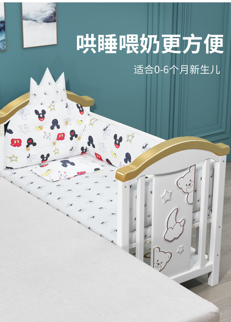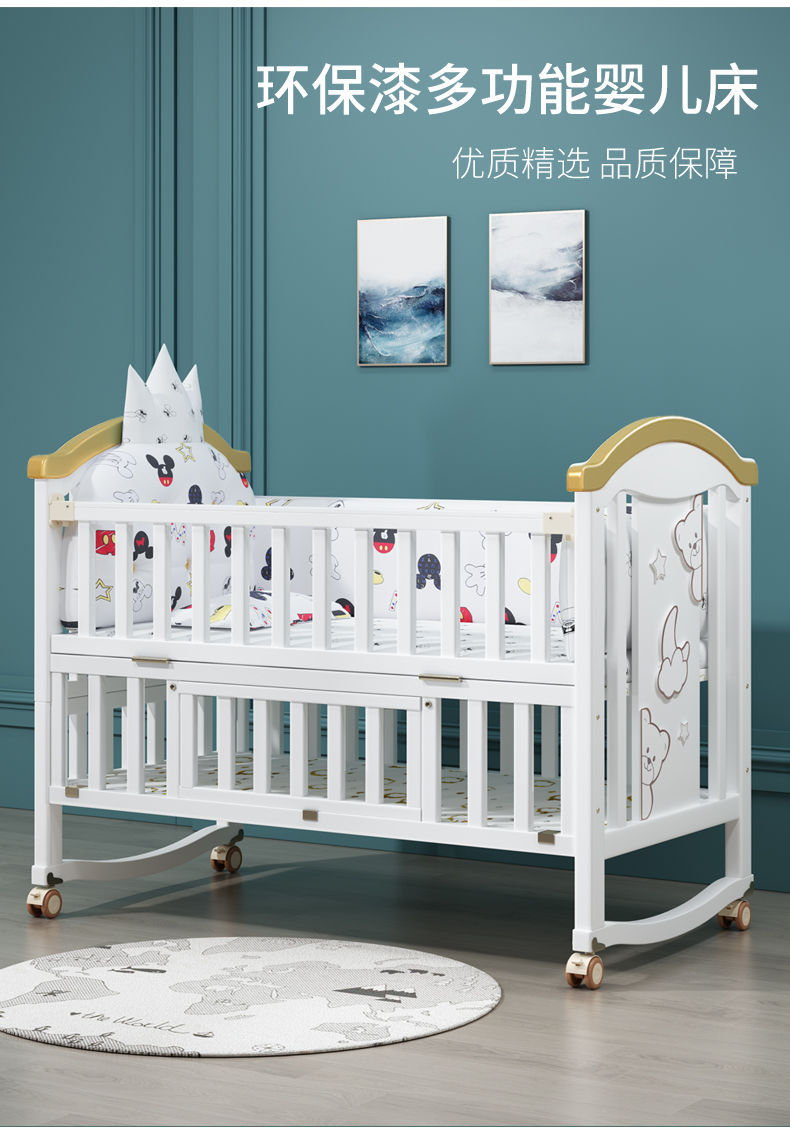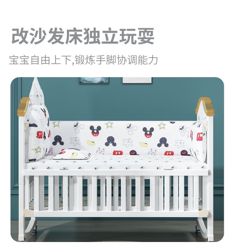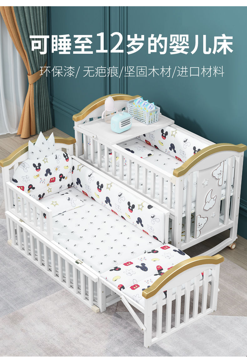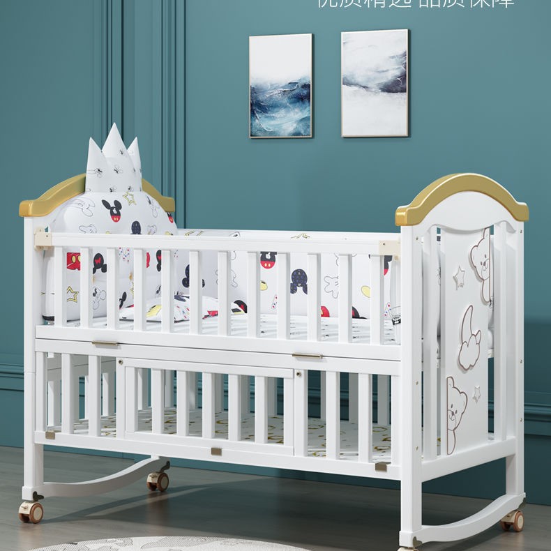 Кроватка Aimeng кровать из цельного дерева, подвижная многофункциональная детская колыбель в европейском стиле, детская кровать из цельного дерева