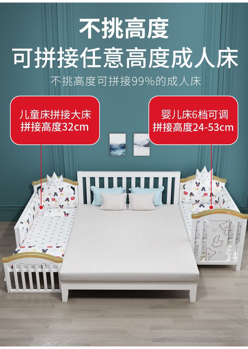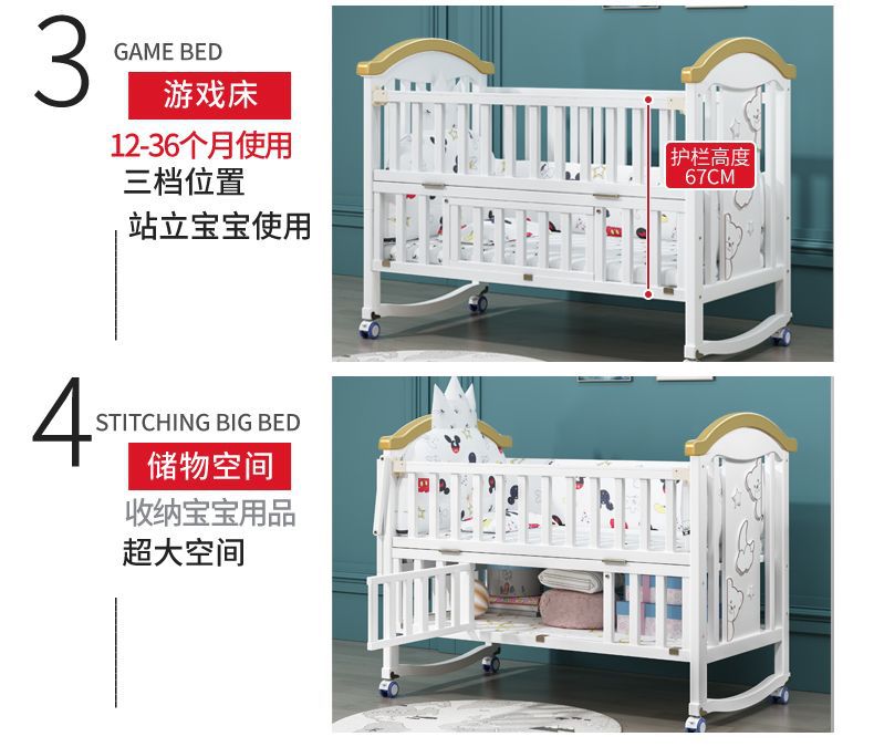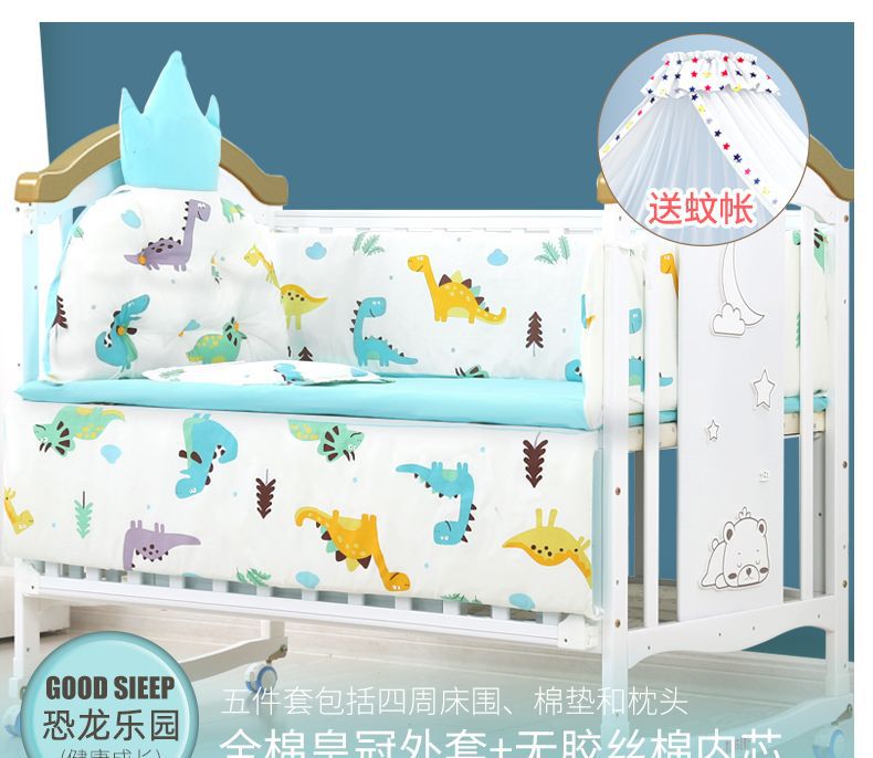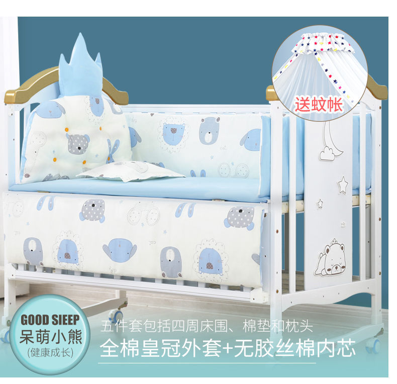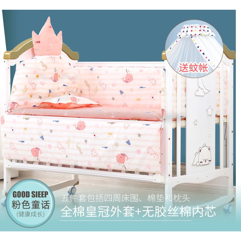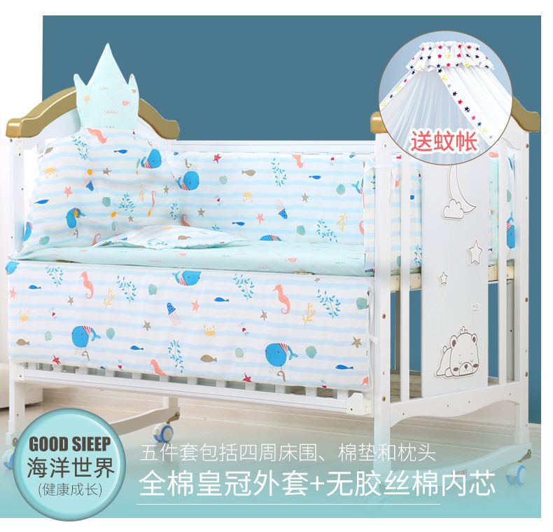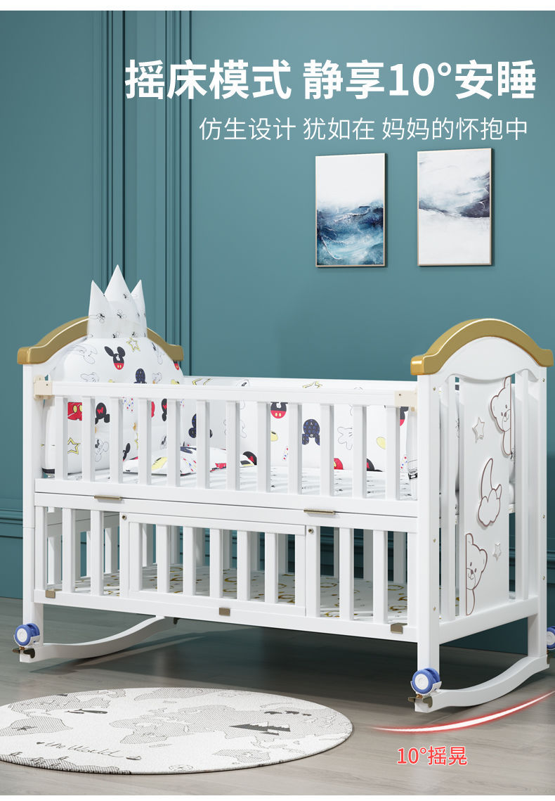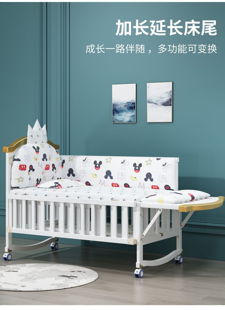 Кроватка Aimeng кровать из цельного дерева, подвижная многофункциональная детская колыбель в европейском стиле, детская кровать из цельного дерева
