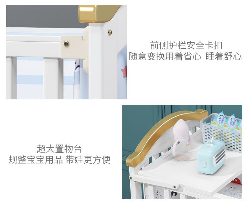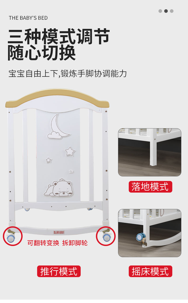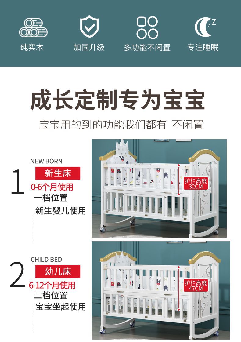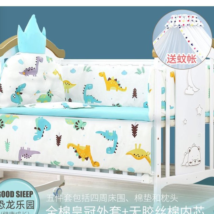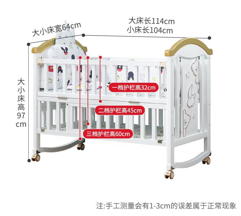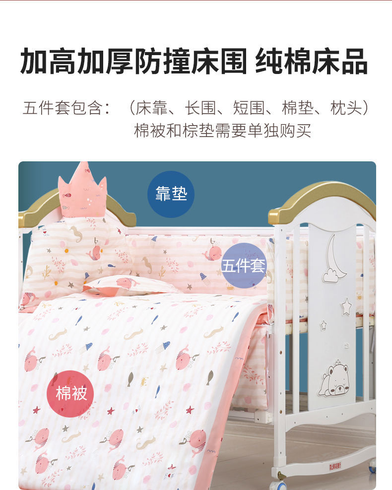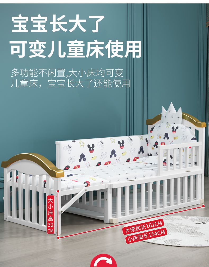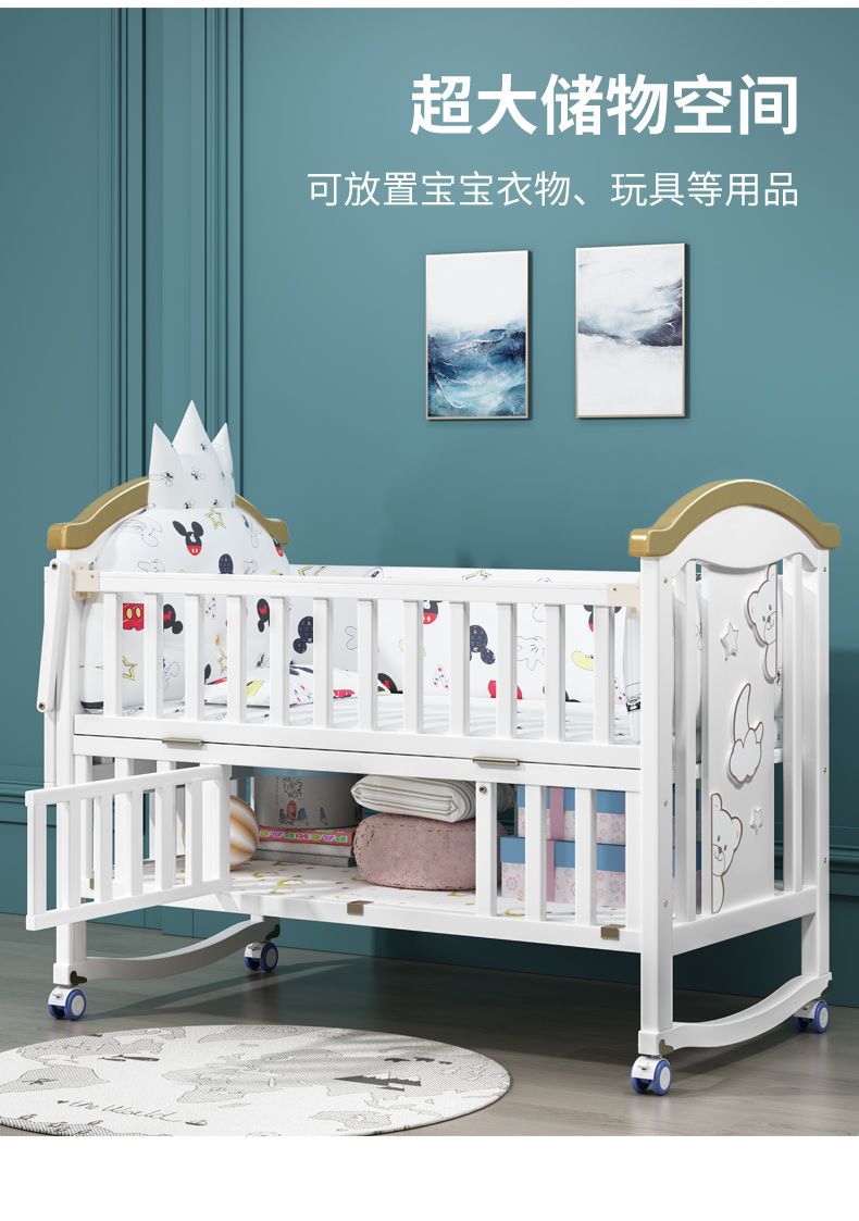 Кроватка Aimeng кровать из цельного дерева, подвижная многофункциональная детская колыбель в европейском стиле, детская кровать из цельного дерева