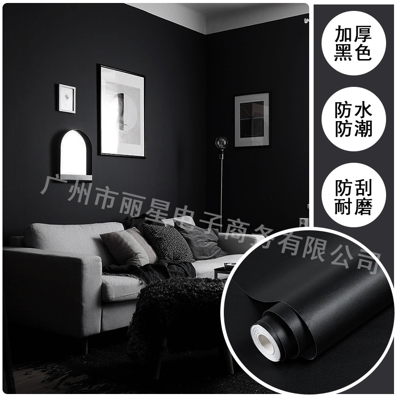 Черные обои самоклеящиеся водонепроницаемые и влагостойкие обои для спальни, общежития, наклейка для домашнего рабочего стола, матовый фон, наклейка на стену, самоклеящаяся
