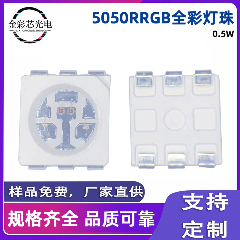 Светодиоды 5050RGB, сверхъяркие полноцветные (красный, зеленый, синий), 0.2Вт/0.5Вт, водонепроницаемые, с цветными наклейками