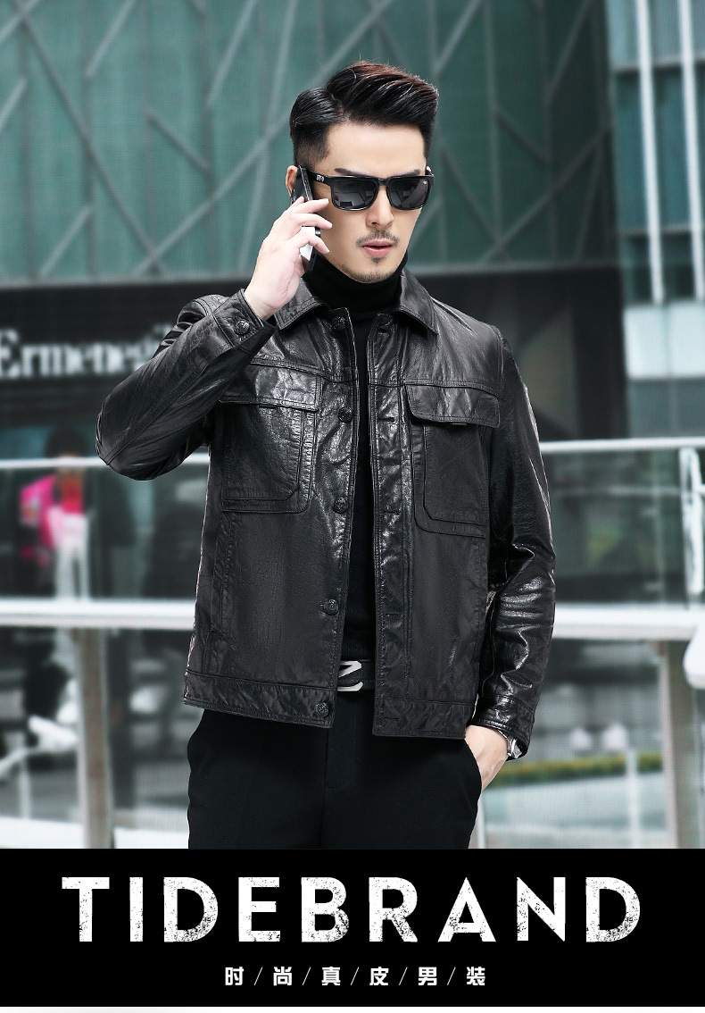 Весенне-осенняя новая мужская куртка из натуральной кожи, мужская куртка из воловьей кожи с масляным воском, Корейская мотоциклетная мужская куртка с лацканами P500