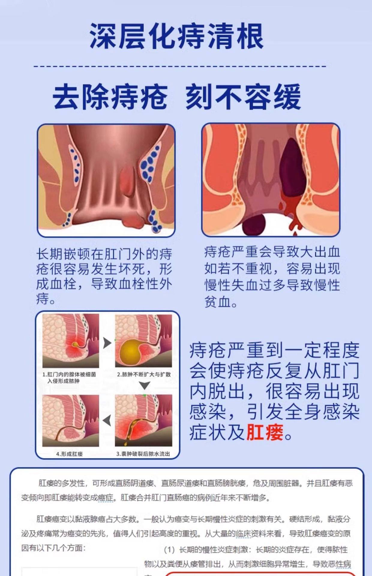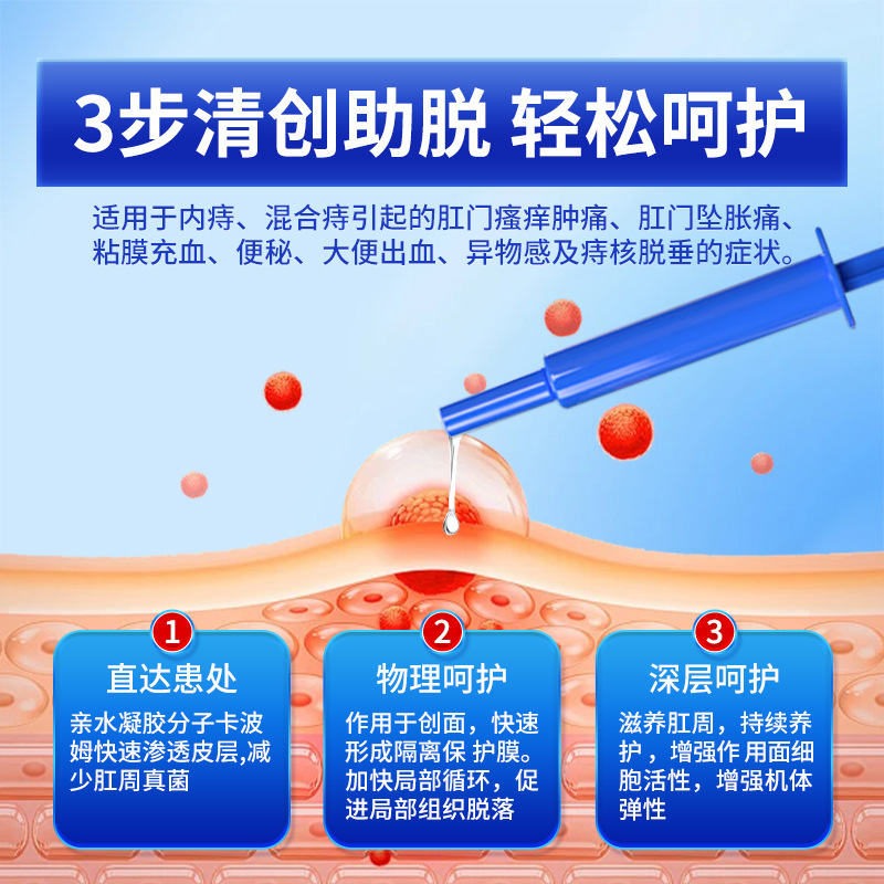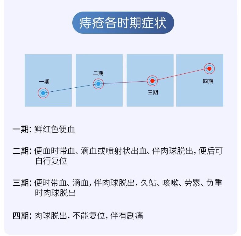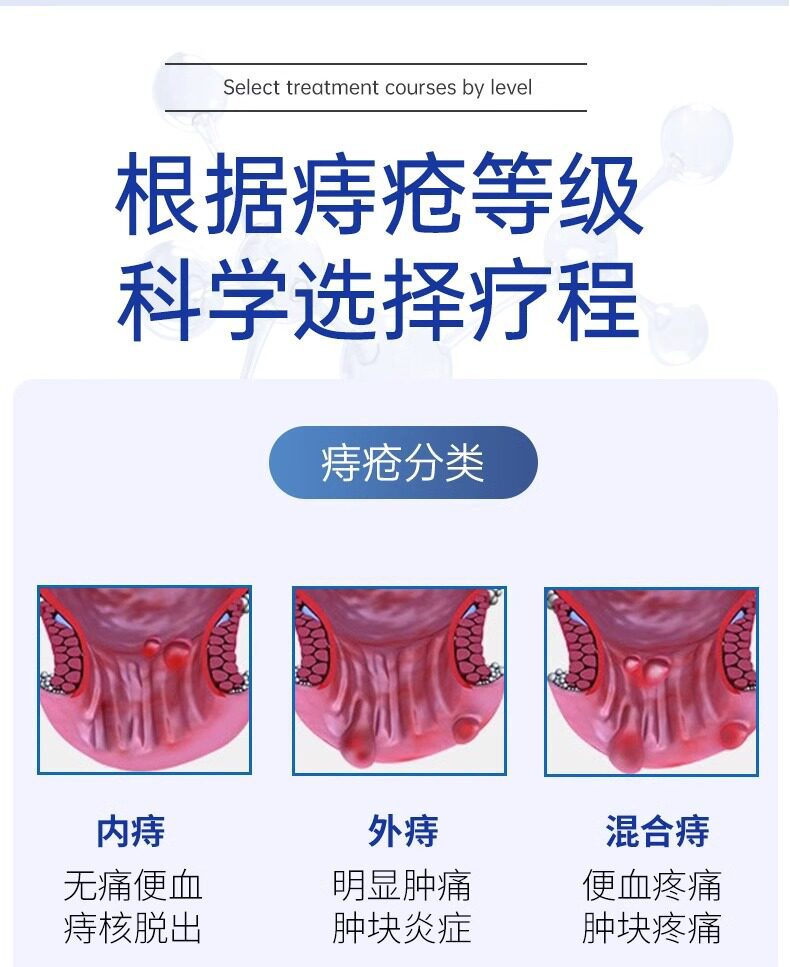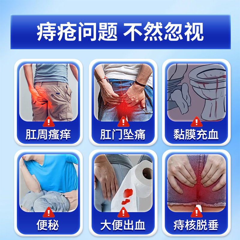 Подходит для симптомов, вызванных внутренним геморроем и смешанным геморроем, включая зуд и отёк ануса, боль при выпадении геморроидальных узлов, застой слизистой, запор, кровавый стул, ощущение инородного тела и выпадение геморроидальных узлов.