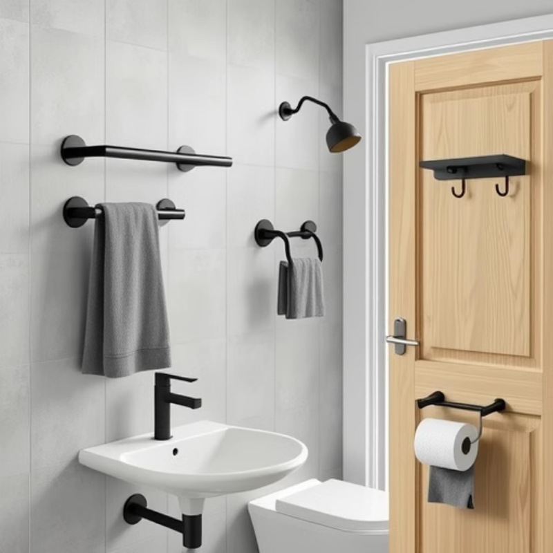 Черная вешалка для туалетных полотенец из нержавеющей стали Стеллаж для ванной Настенная вешалка для полотенец Подвесной костюм для ванной комнаты