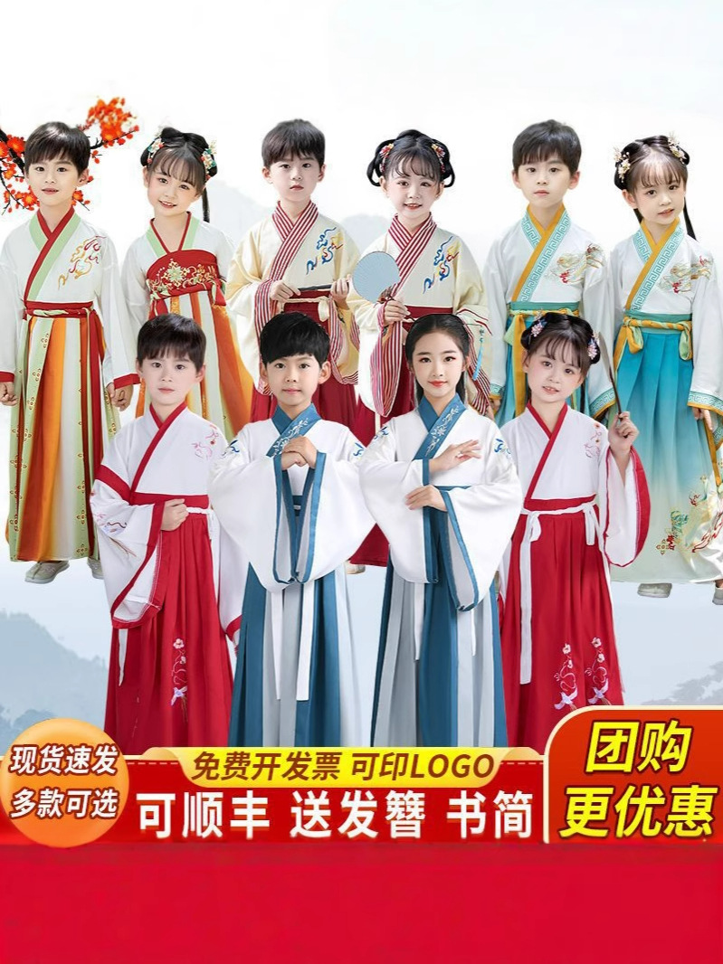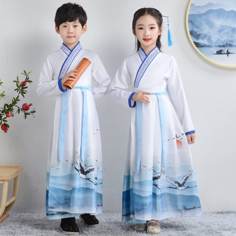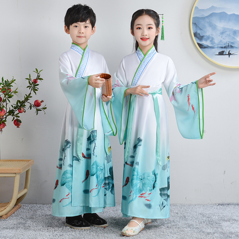 Детские ханфу, для девочек, можно носить на каждый день, традиционный китайский костюм для выступлений, китайский стиль для мальчиков, оптом для учащихся начальной школы