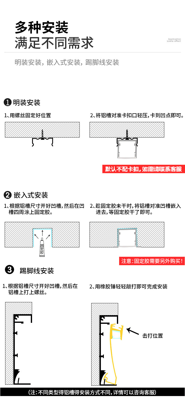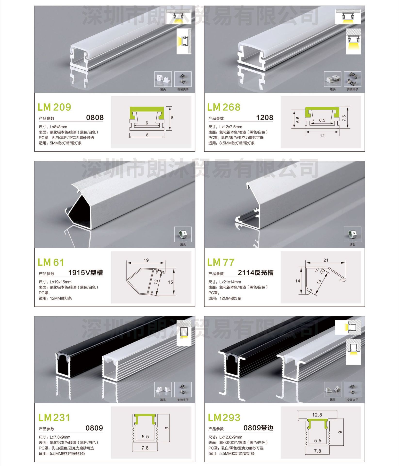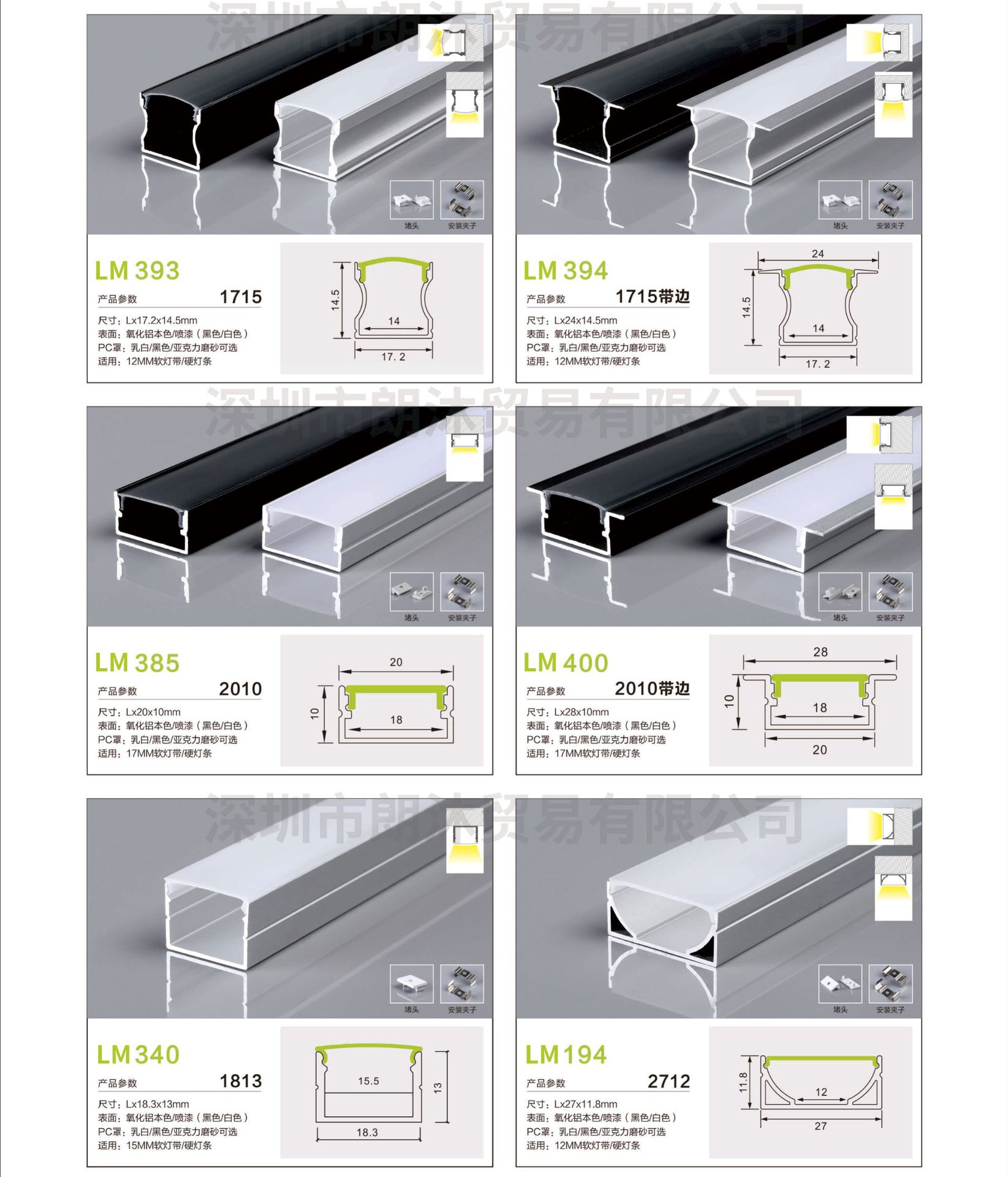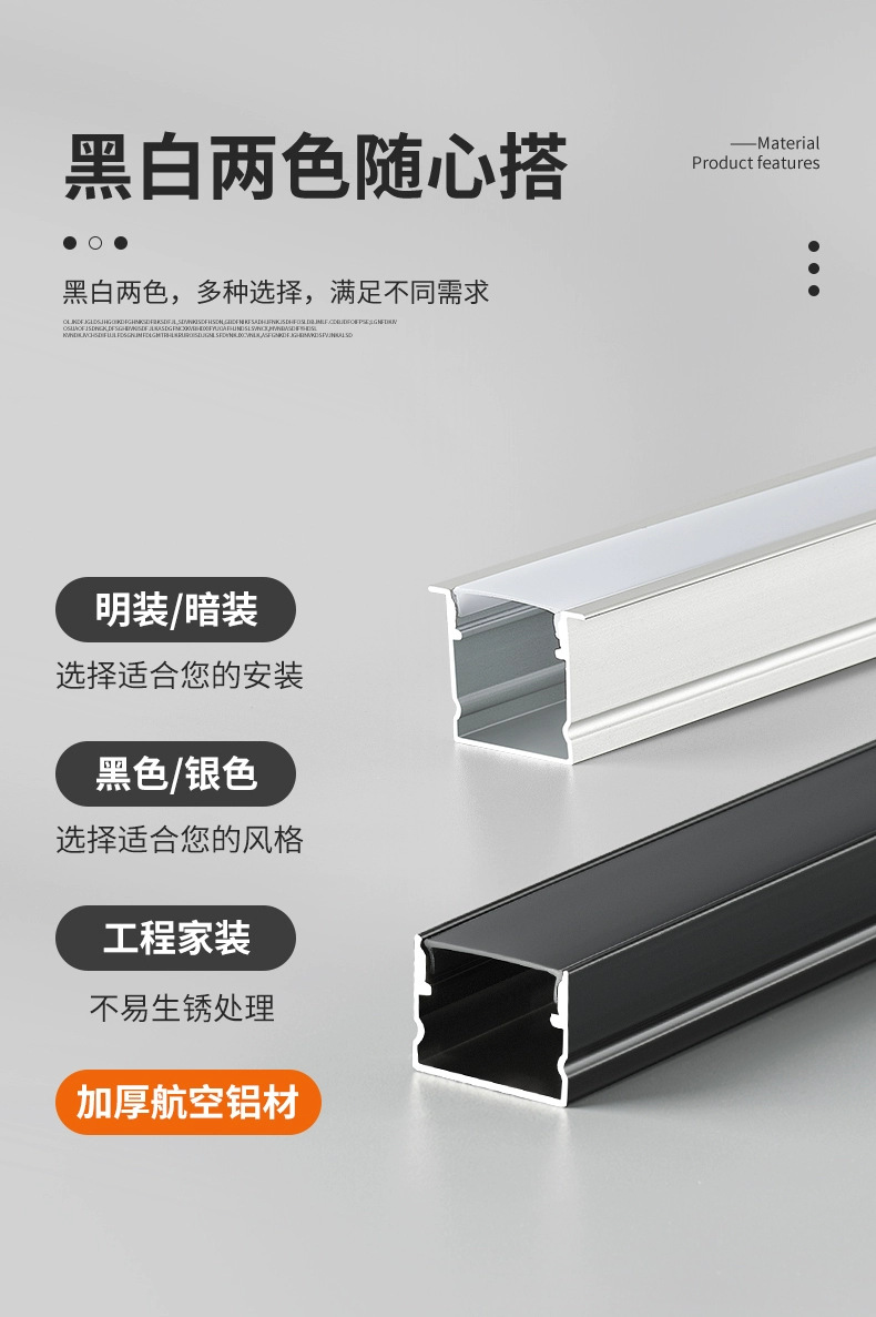 Линейная лампа Светодиодная Линейная лампа Встроенная алюминиевая слот открытая и скрытая линейная лампа с линейным потолком U Черная лампа