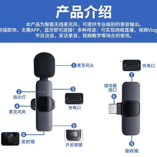 K1/K8-TypeC (приемник без порта зарядки); Адаптер K1/K8-TypeC+Pingguo; K1/K9-TypeC один к одному (модель с зарядкой); Интерфейс K1/K9-Pingguo один к одному (модель с зарядкой); K1/K9-TypeC один к двум (перезаряжаемая модель); Интерфейс K1/K9-Pingguo один к двум (модель с зарядкой); K1/K9-TypeC один к одному (модель с зарядкой) + адаптер; K1/K9-TypeC один к двум (модель с зарядкой) + адаптер; K1/K9-TypeC один к одному (модель для зарядки) + USB-адаптер; K1/K9-TypeC один к двум (модель с зарядкой) + USB-адаптер; K1/K9-TypeC один к двум (модель для зарядки) + адаптер + USB-адаптер; J11Typec; J11ios; Адаптер J11Typec+Pingguo; J11Typec+адаптер Pingguo+адаптер USB; J13Typec; J13ios; Адаптер J13Typec+Pingguo; J13Typec+адаптер Pingguo+адаптер USB; К15 одинарная пшеница; К15 двойная пшеница; Петличный микрофон J12 с двойной головкой