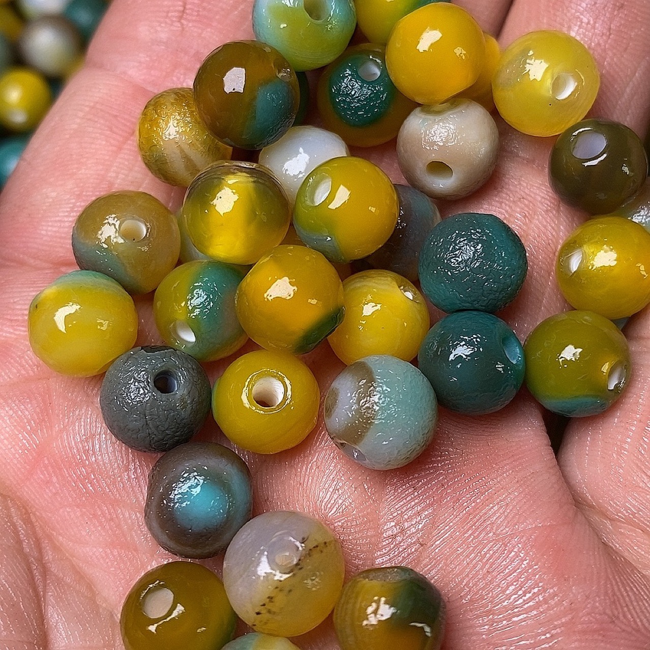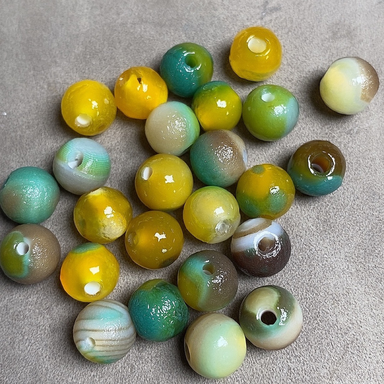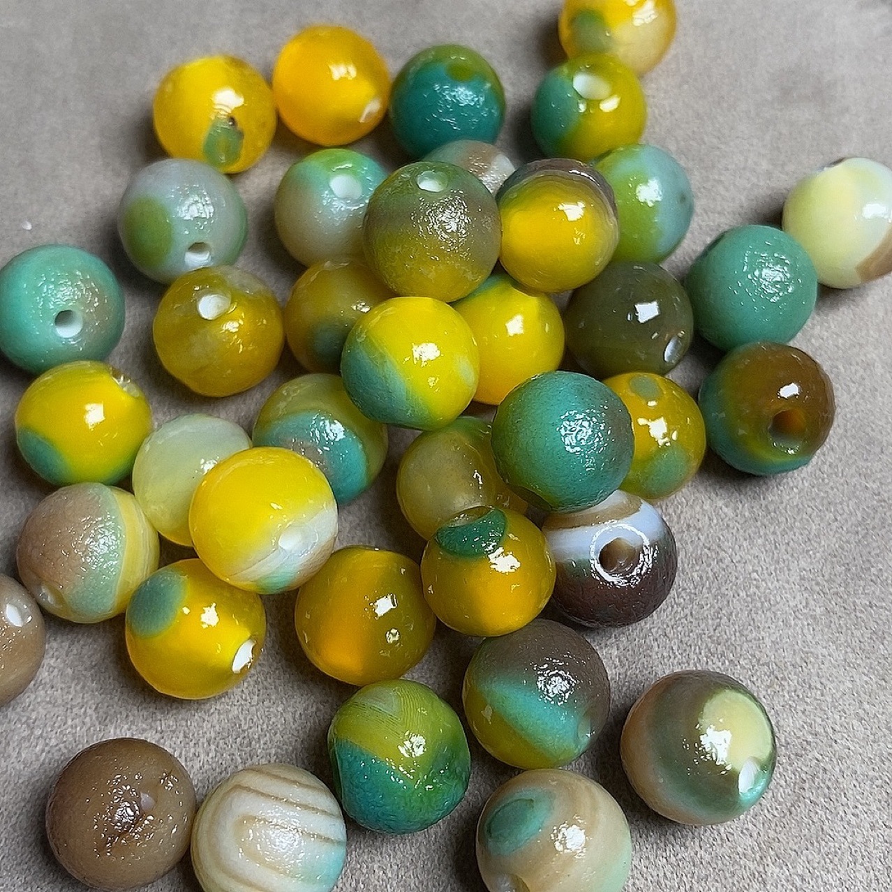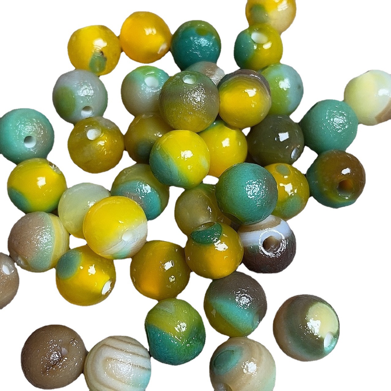 Натуральный желтый зеленый цветок Агат круглая бусина одна бусина свободная бусина DIY с бусинами кулон с фабрики прямая оптовая продажа Старый Агат
