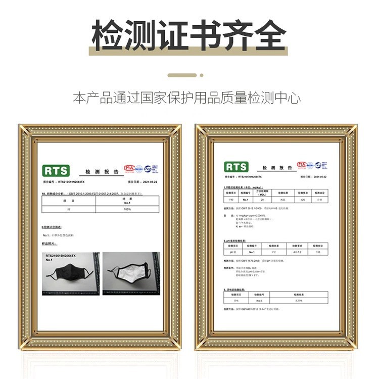 常规棉口罩出货每个口罩独立包装(可选自封袋英文包装或OPP透明袋),配有合格证,检验报告