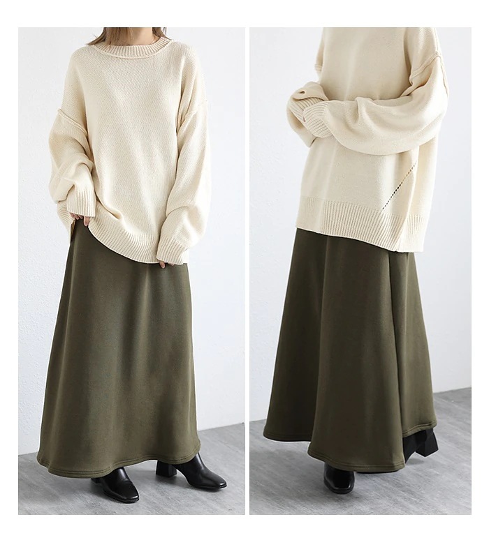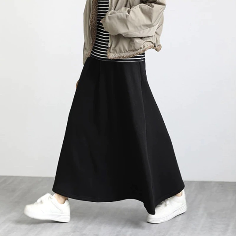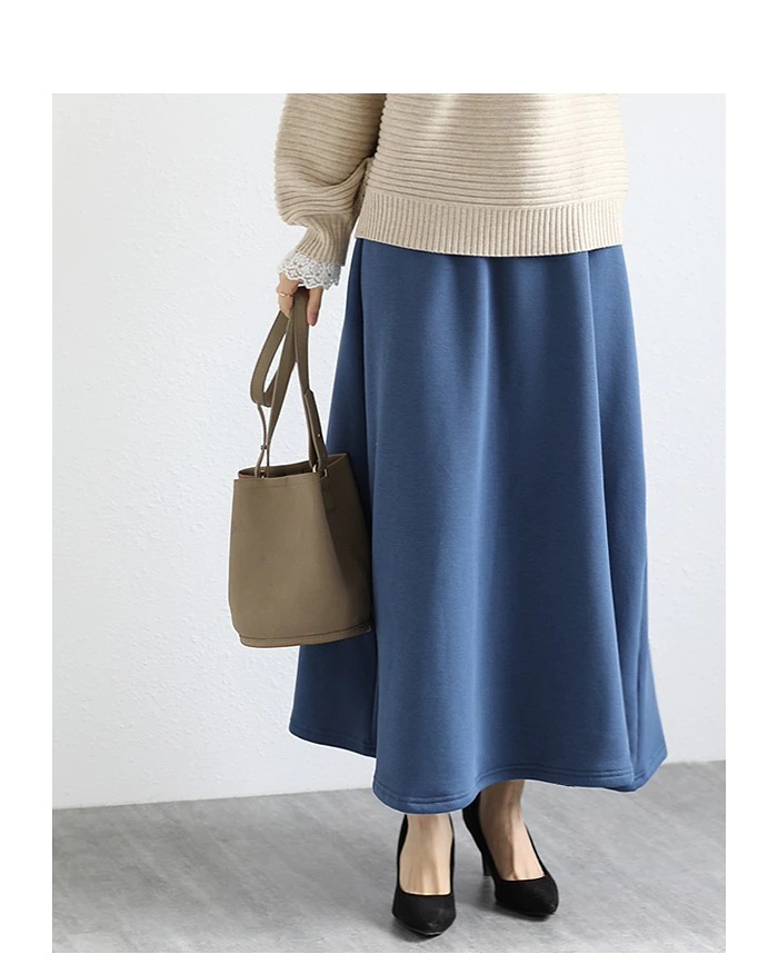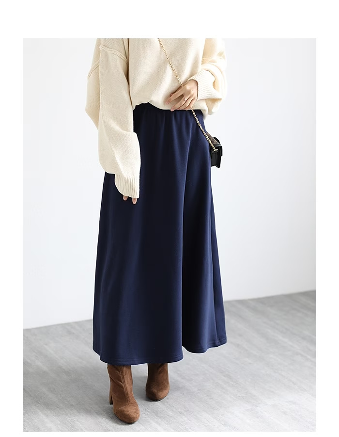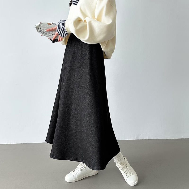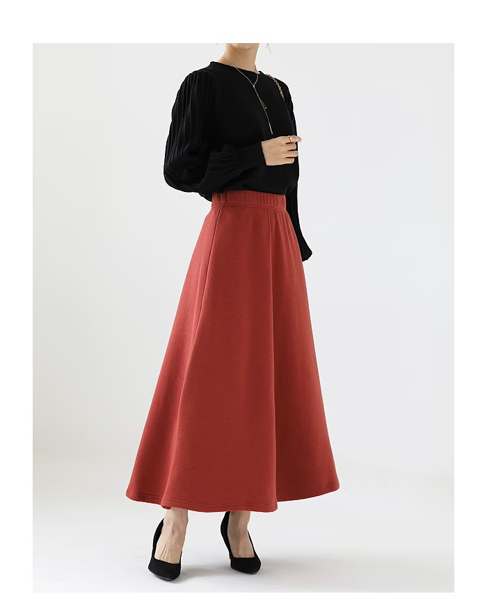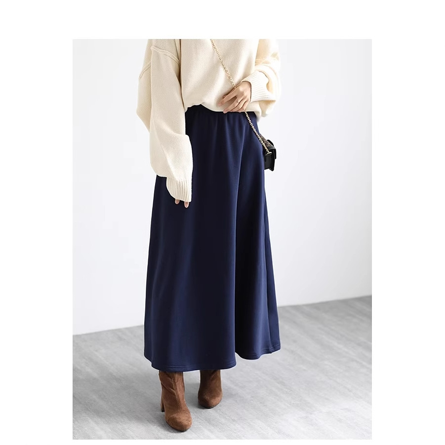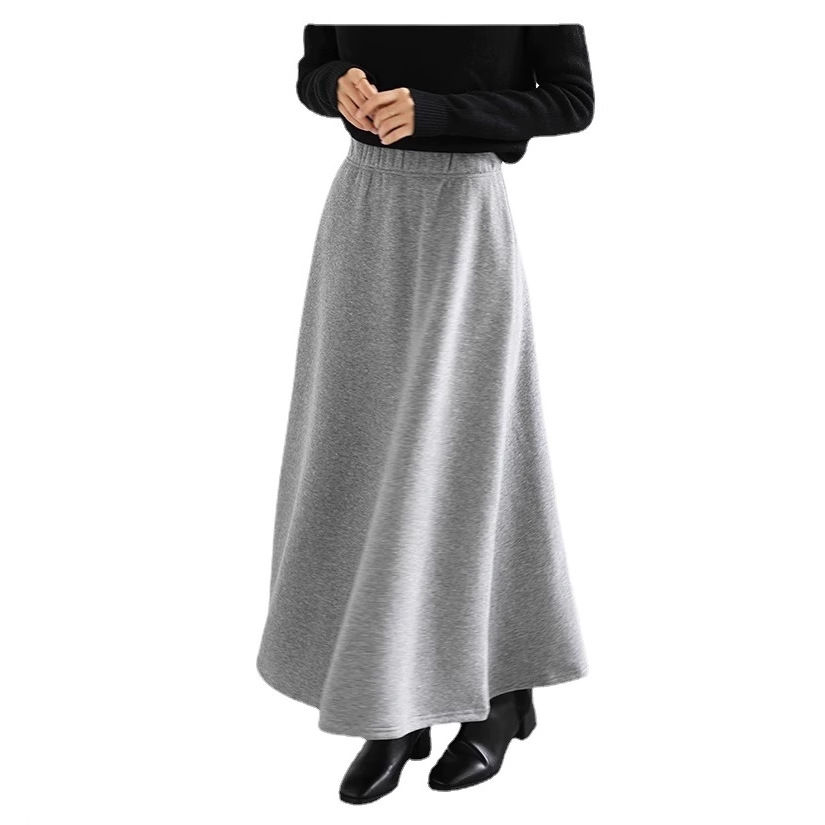 Юбка на флисовой подкладке Утолщенная Весна-Осень-зима Большая юбка-качели с высокой талией Юбка средней длины А-силуэта Универсальная длинная юбка для похудения Женская юбка