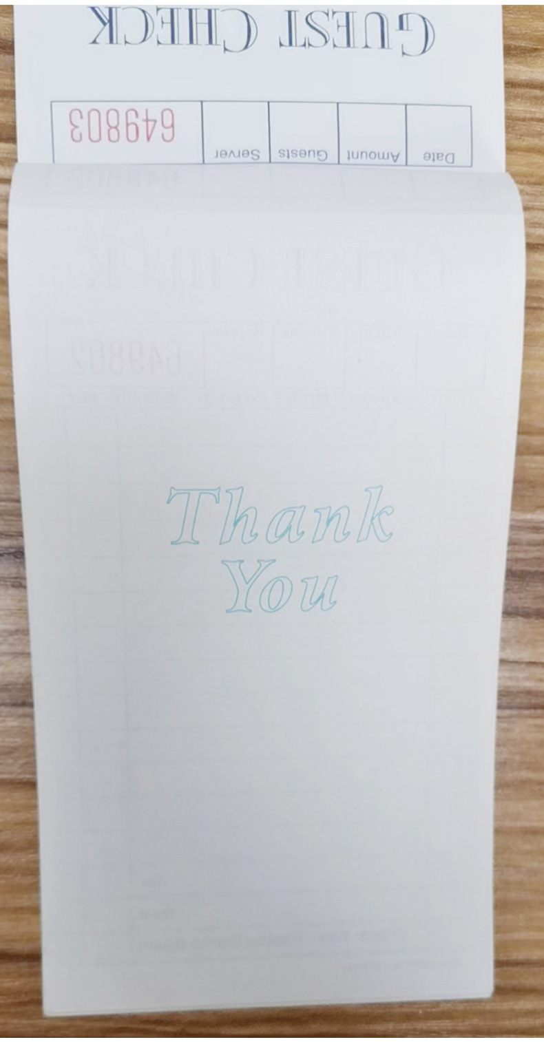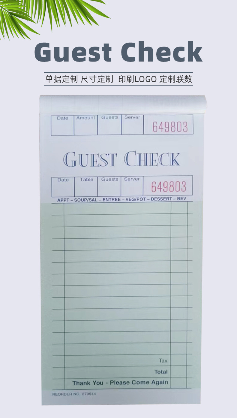 Зарубежное меню, книга для проверки гостей, двусторонняя печать, разрываемая вручную линия, заготовка серийного номера