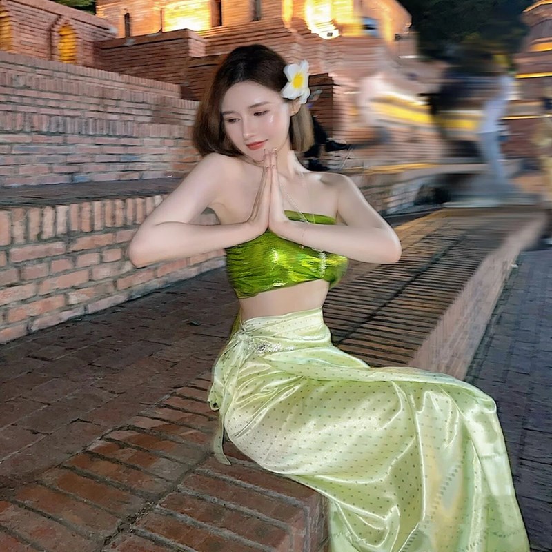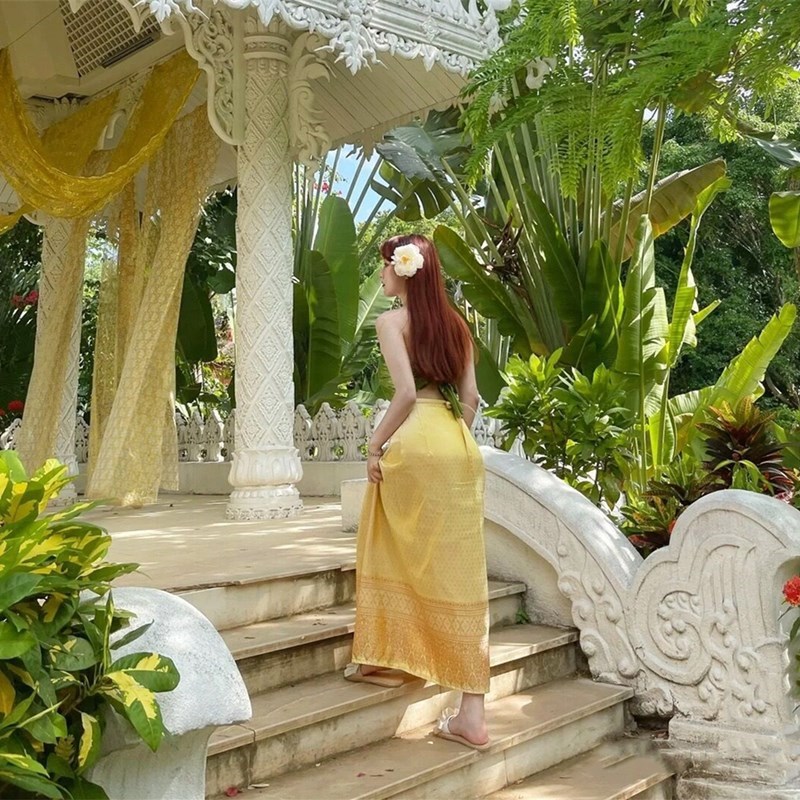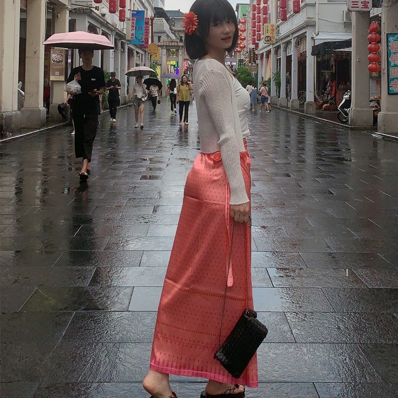 Юньнань Дай и Тай Этническая юбка с галстуком Юбка Характерная для меньшинства Xishuangbanna костюм Танцевальная длинная юбка