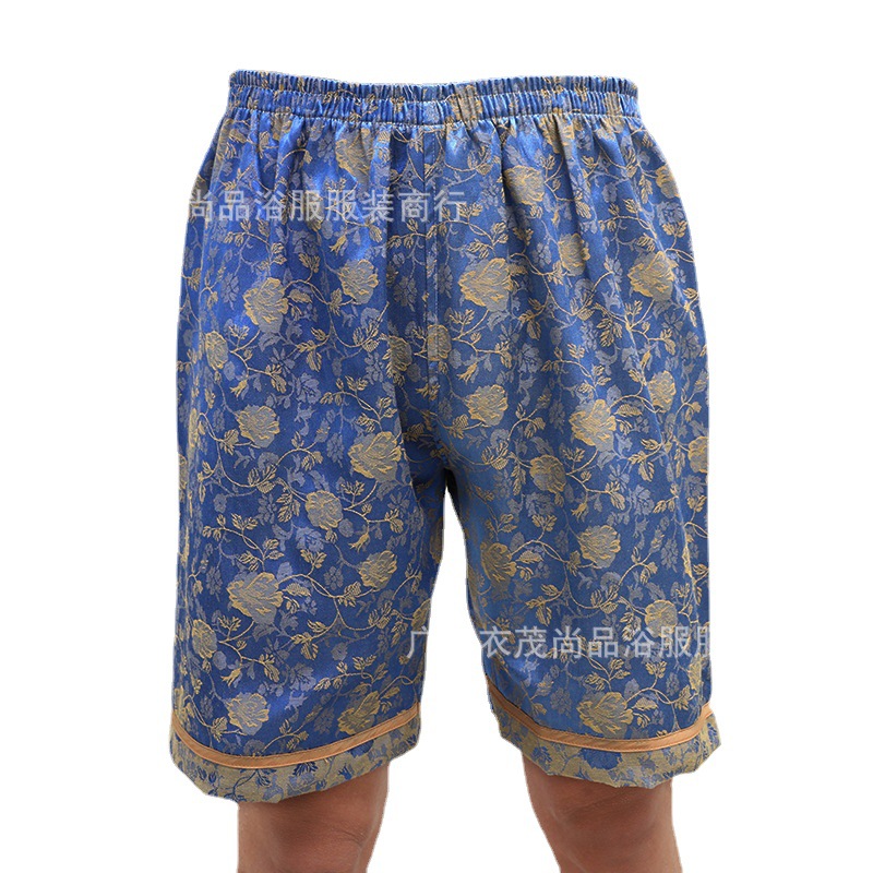 Шорты с разрезом «Цветение золотого богатства»; Желтые шорты с насыщенным цветком; Землистые желтые шорты с цветочным принтом и разрезами; Хаки богатые цветочные шорты; Красные шорты с богатым цветком; Веер богатые цветочные шорты; Синие шорты с разрезом и цветком орхидеи; Синие шорты с богатым цветком; Коричневые потрескавшиеся шорты; Коричневые шорты с цветочным принтом и разрезами; Коричневые шорты с насыщенным цветочным принтом; розовые шорты с разрывами; Бежевые шорты в клетку с разрезом три силуэтом; Синие шорты Сплит Древний цветок; Мужские шорты в клетку бежевого цвета; Бежевые шорты Xiangyun; Шорты Желтый дракон; Синяя серая сетка