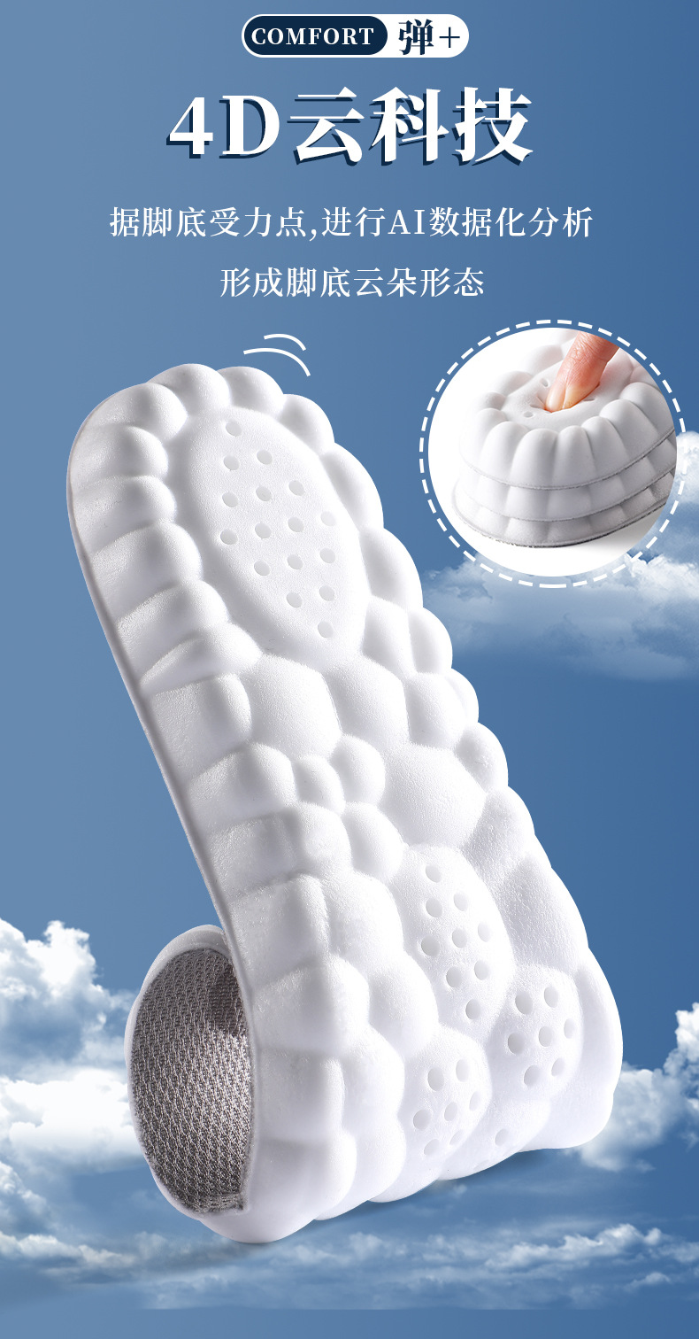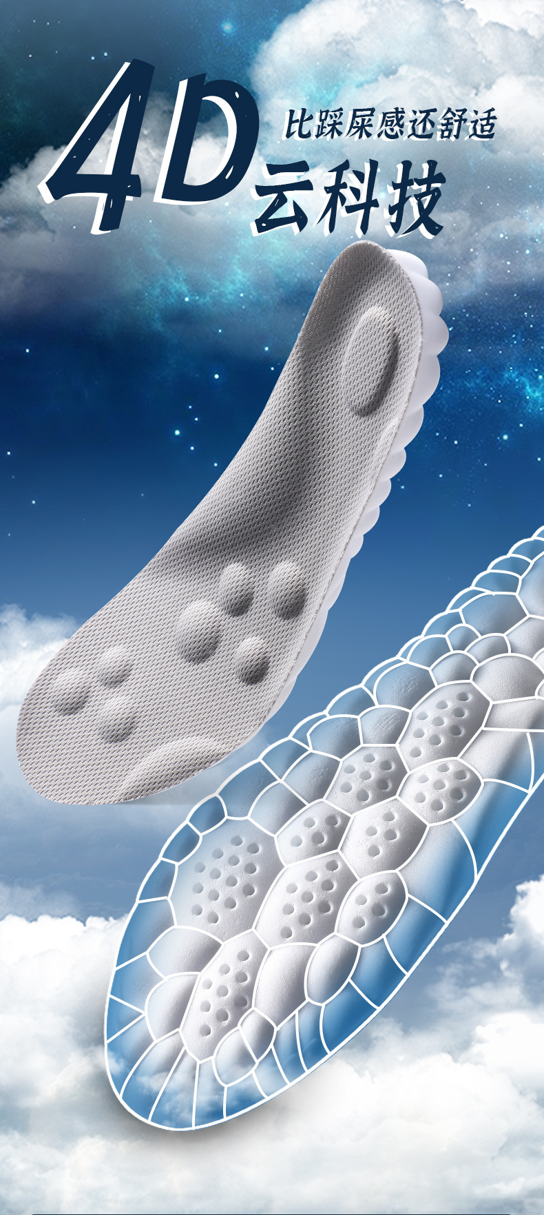 4D Cloud Technology PU массажные арочные стельки мужские с высокой пулей амортизатор анти-поглощение запаха пот, наступивший на ощущение дерьма, Спортивная Стелька оптом