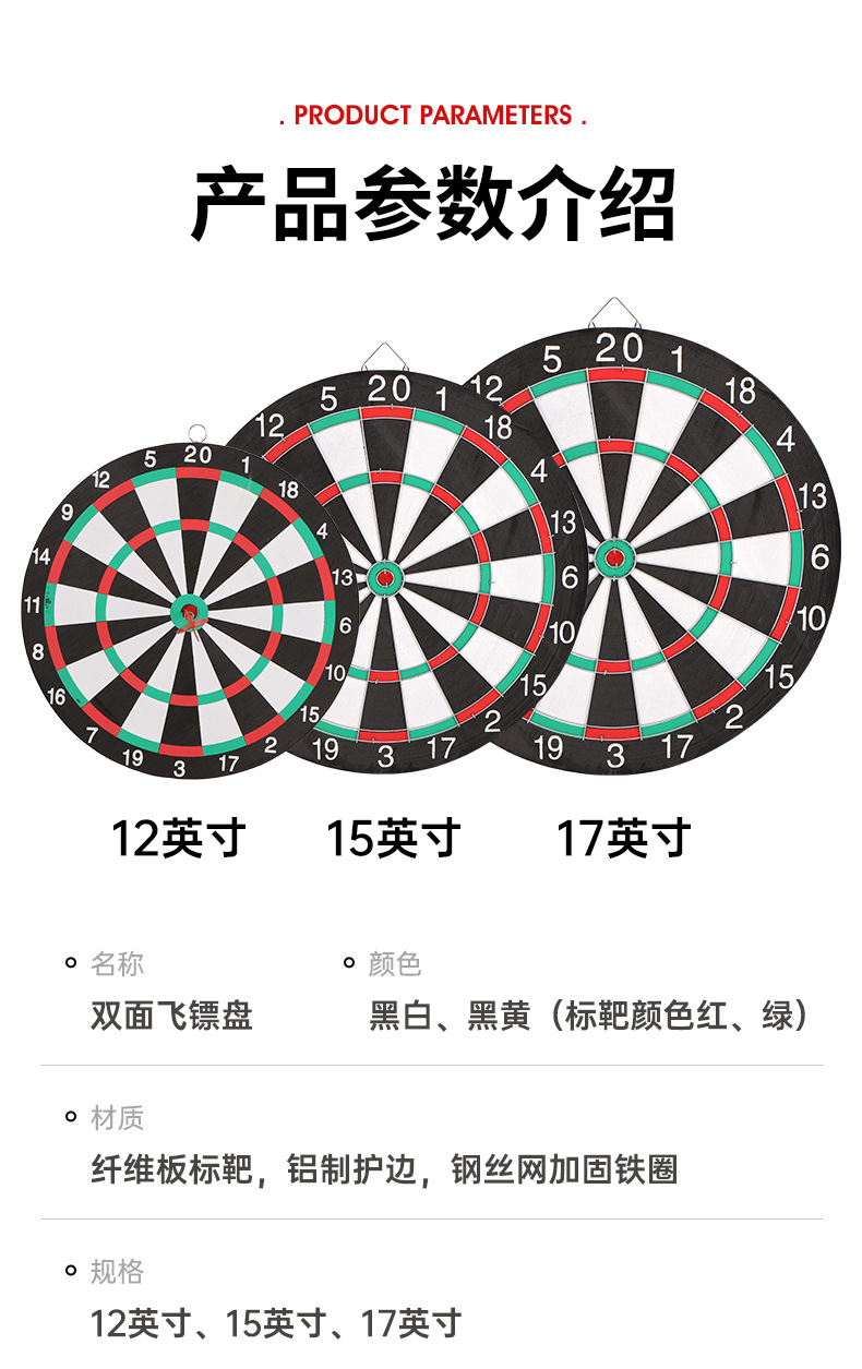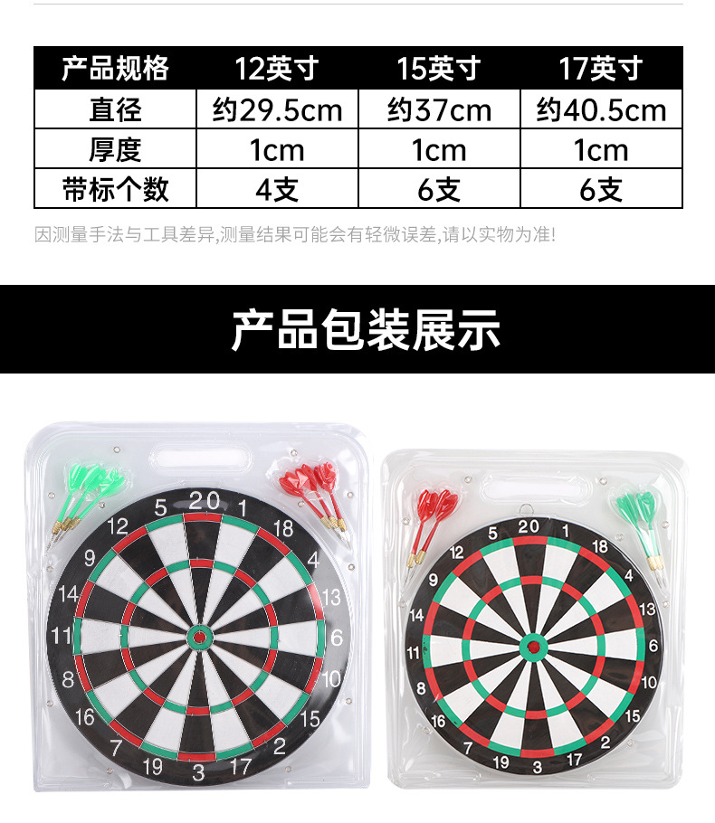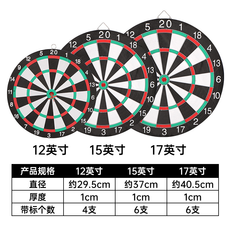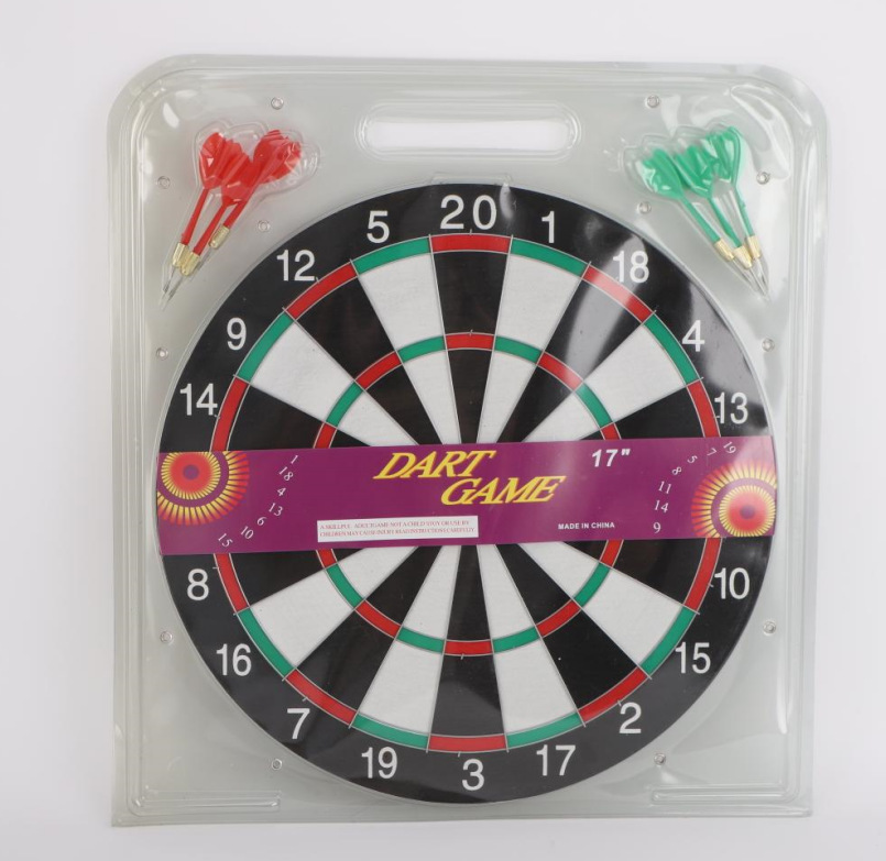 12-дюймовый дротик без сетки с 4 дротиками; 15-дюймовый дротик без сетки с 6 дротиками; 17-дюймовый дартс без сетки с 6 дартс; 12-дюймовая тарелка для дартс с двойным пузырьком с 4 дротиками (двойная пузырьковая оболочка); 15-дюймовый дротик с 6 дротиками (двойной пузырь); 17-дюймовый дартс с 6 дартс (двойная пузырчатая оболочка); 12-дюймовый дартс с 4 дартс (цветная коробка); 15-дюймовый дартс с 6 дартс (цветная коробка); 17-дюймовый дартс с 6 дартс (цветная коробка); 12-дюймовый дартс (флокировка с 4 дротиками) двойной пузырь; 12-дюймовый дартс (флокировка с 4 дротиками) цветная коробка; 15-дюймовый дартс (флокировка с 6 дротиками) двойной пузырь; 15-дюймовый дартс (флокировка с 6 дартс) цветной коробкой; 17-дюймовый дартс (флокировка с 6 дротиками) двойной пузырь; 17-дюймовая дартс (флокировка с 6 дротиками) цветная коробка; 18-дюймовый дартс с 6 дартс; 18-дюймовый дартс (железный) с 6 дартс; 18-дюймовый дартс (флокировка) с 6 дартс; 18-дюймовый дартс (флоат железа с 6 дротиками); 18-дюймовый дартс (флоат железа с 10 дротиками)