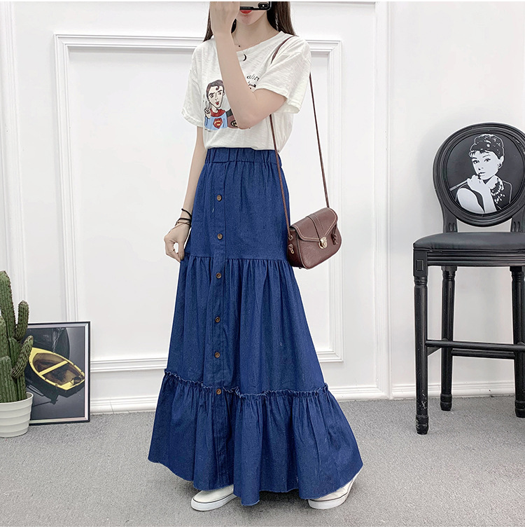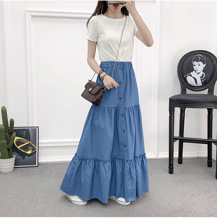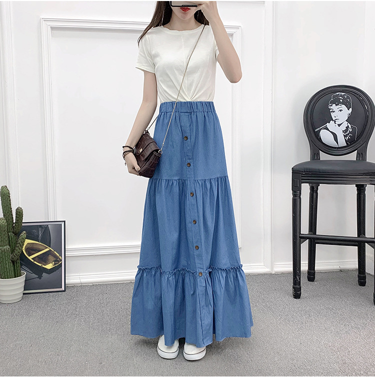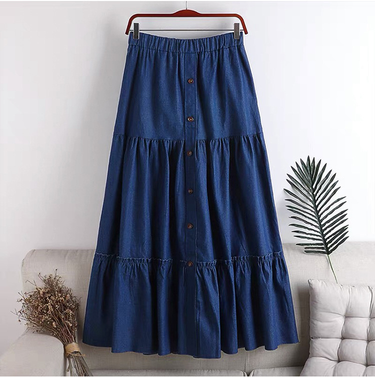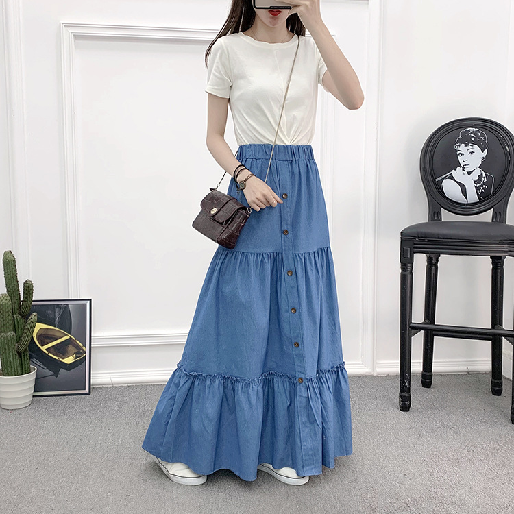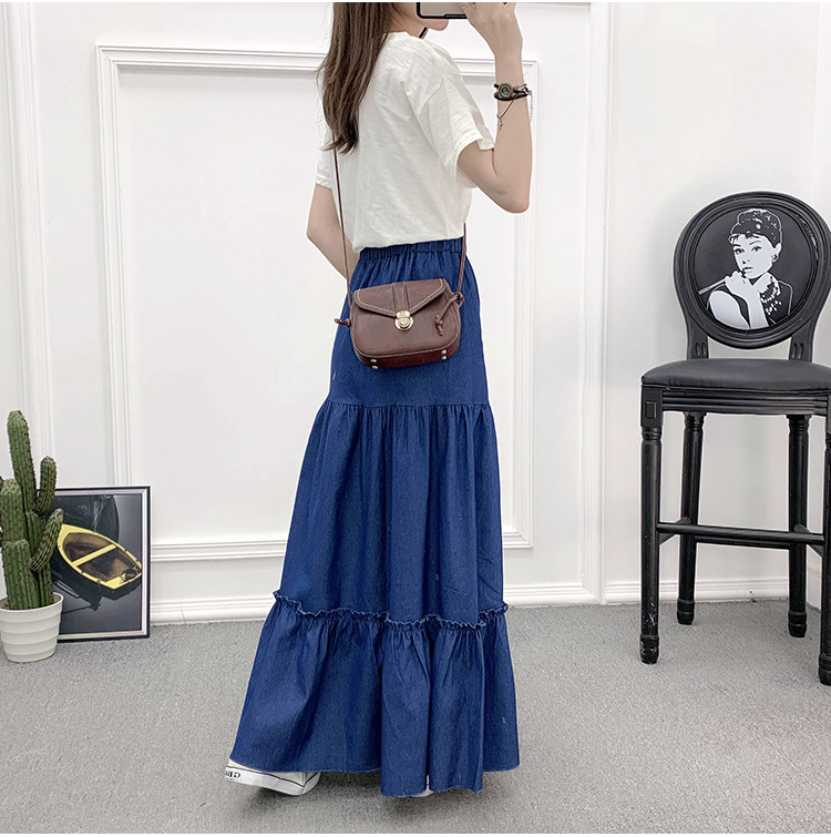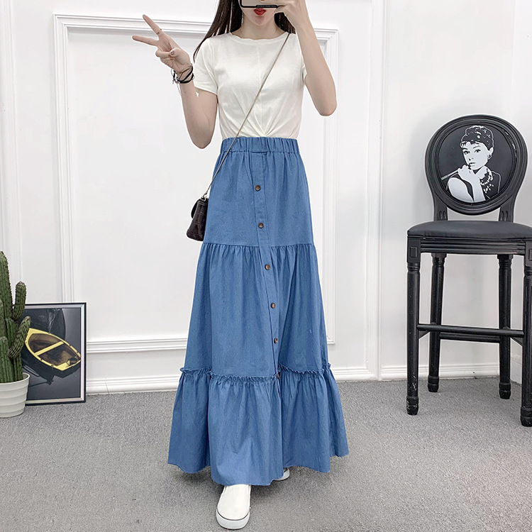 2022 весенне-летняя новая джинсовая универсальная длинная юбка с высокой талией в стиле ретро, простая Свободная юбка А-силуэта с эластичной талией