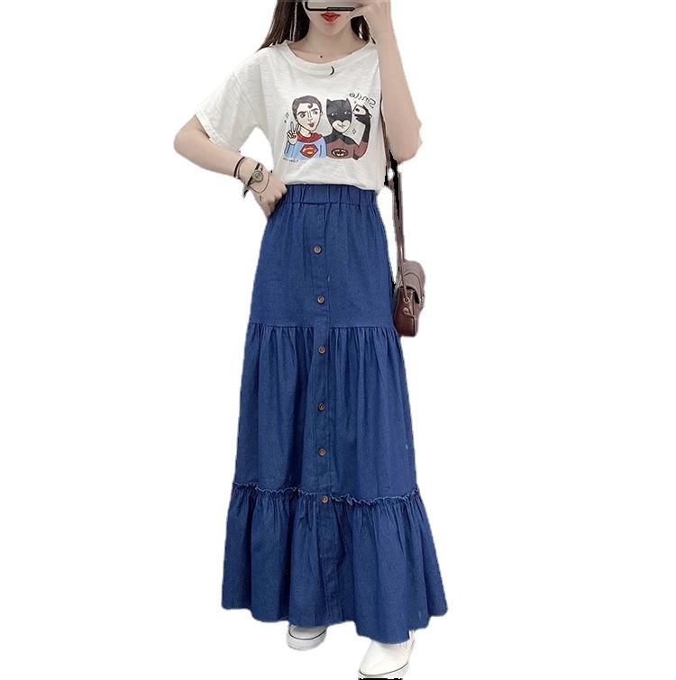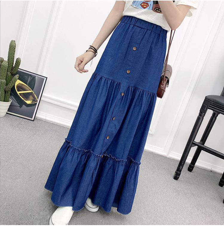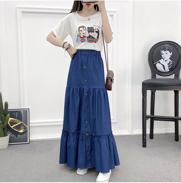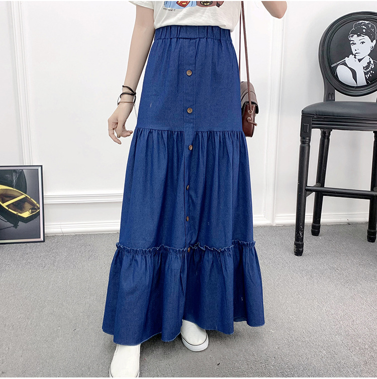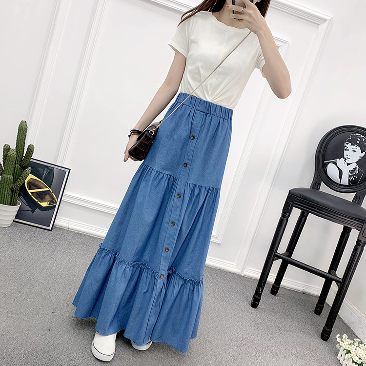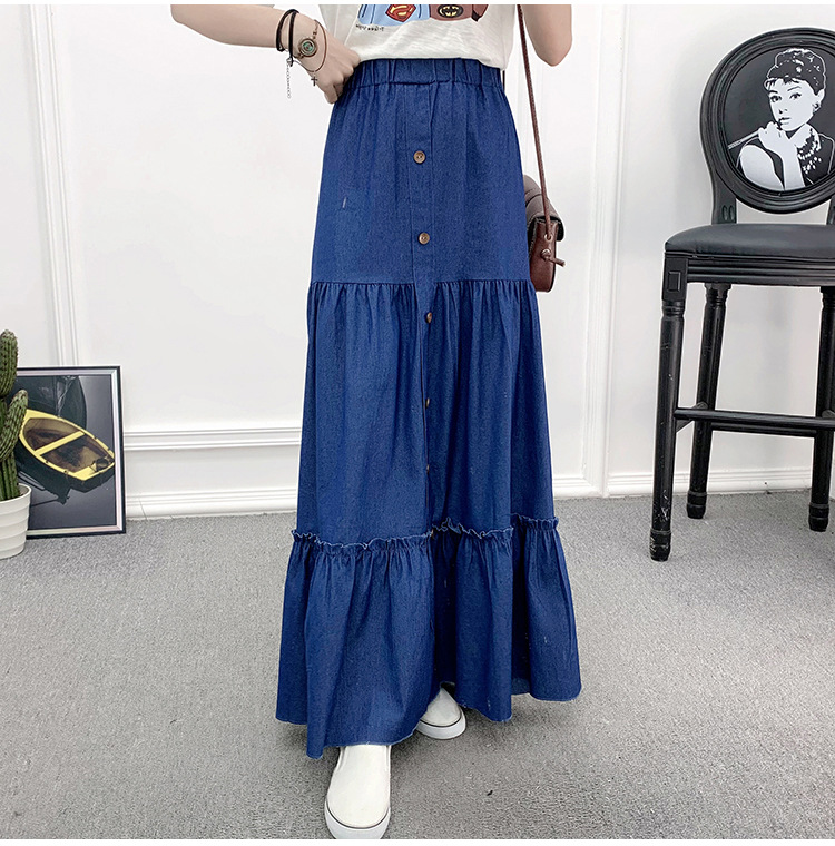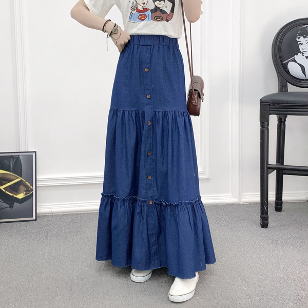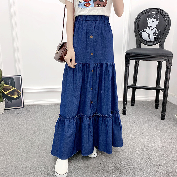 2022 весенне-летняя новая джинсовая универсальная длинная юбка с высокой талией в стиле ретро, простая Свободная юбка А-силуэта с эластичной талией