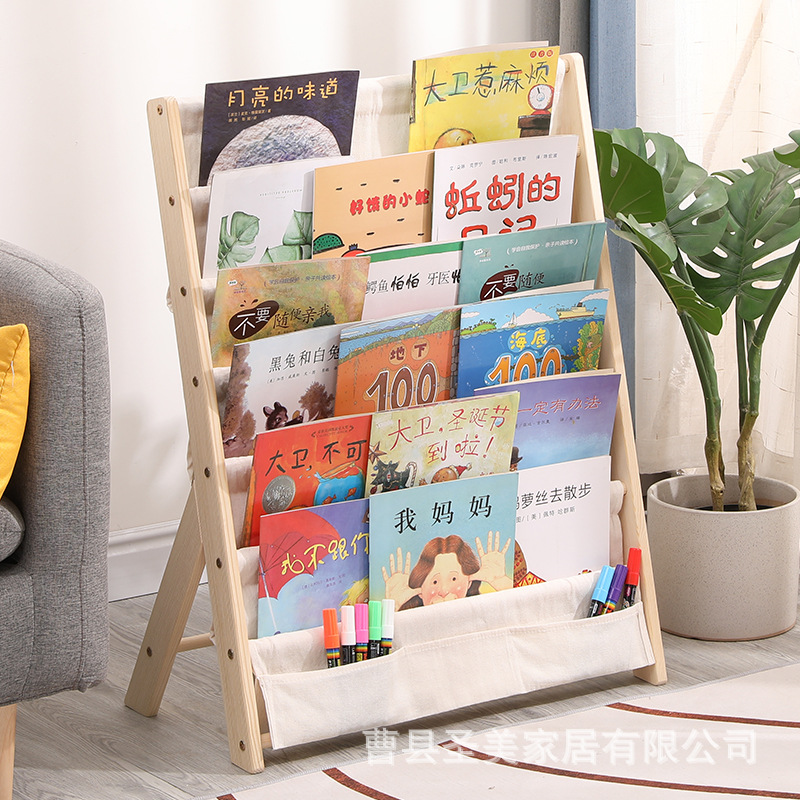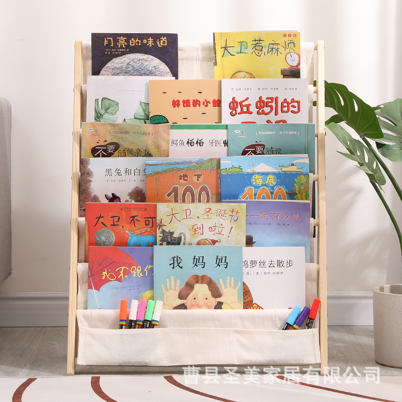 Детская книжная полка, напольная подставка для книг из массива дерева, простая полка для чтения в детской или детском саду.