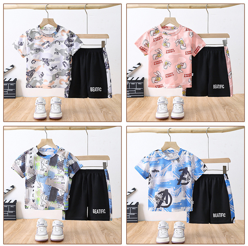 Летний детский набор 2024 новый быстрый сухой спортивный костюм для мальчиков камуфляж футболка из двух частей детская одежда оптом