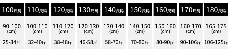 100cm; 110cm; 120cm; 130cm; 140cm; 150cm; 160cm; 170cm; 180cm; 190cm; 200cm
