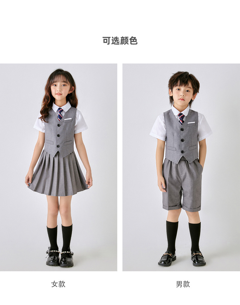 комплект из двух предметов для мальчиков; комплект из двух предметов для девочек; костюм-тройка для мальчика; комплект из трех предметов для девочек; Комплект из трех предметов с пышными рукавами для девочек; комплект из двух предметов рубашки для мальчиков; комплект из двух предметов рубашки для девочки; Комплект из двух предметов рубашки с пышными рукавами для девочек; жилет; шорты; юбка