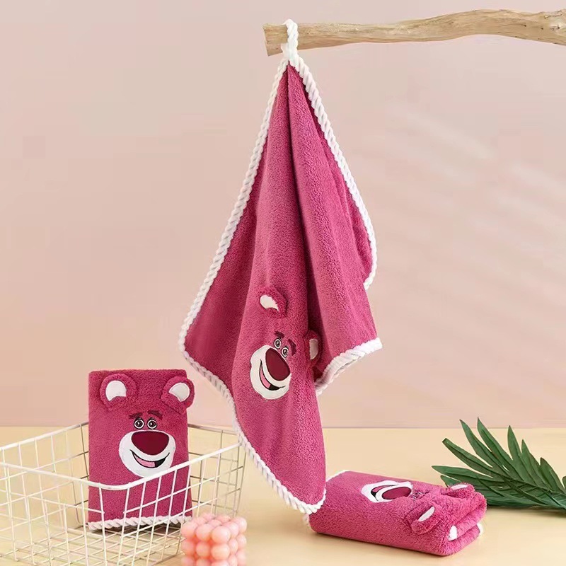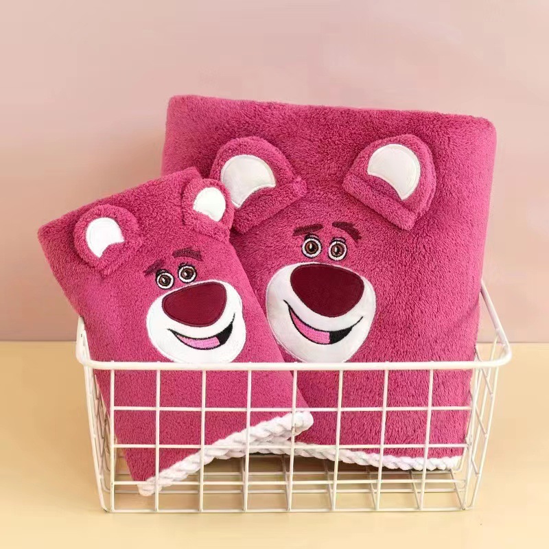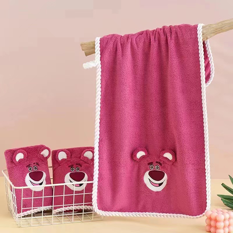 Клубничный медведь полотенце банное полотенце коралловый флис костюм мультфильм вышивка банное полотенце Дети толстый абсорбент мягкий оптом