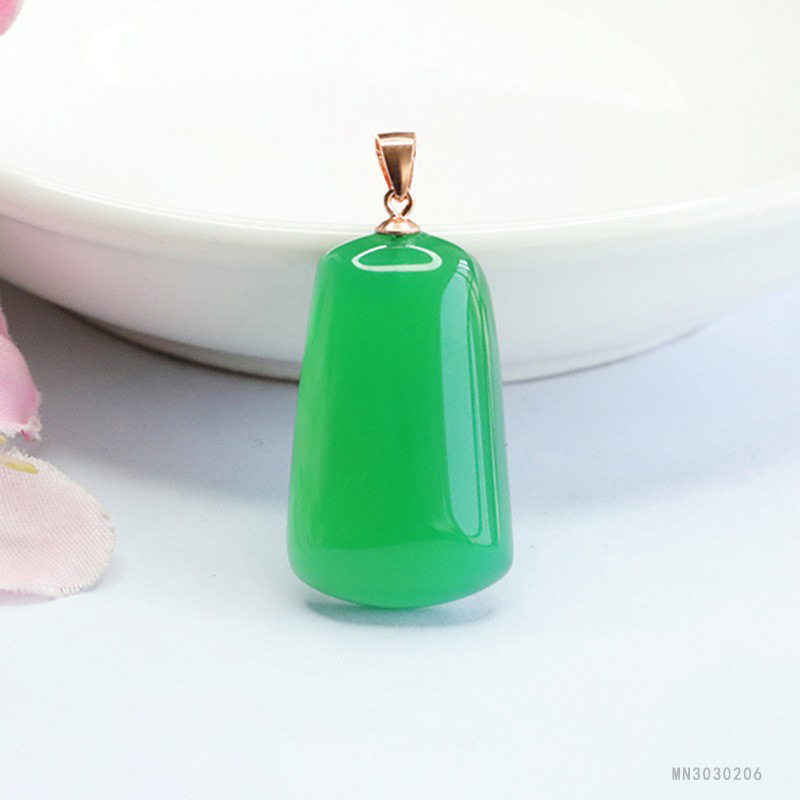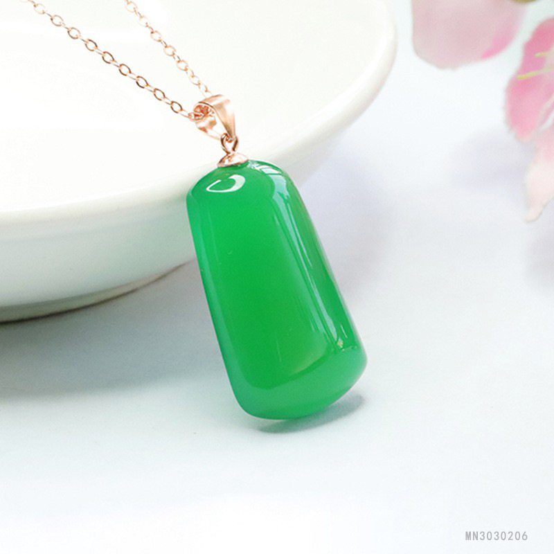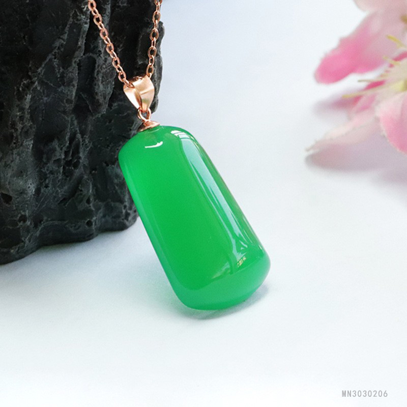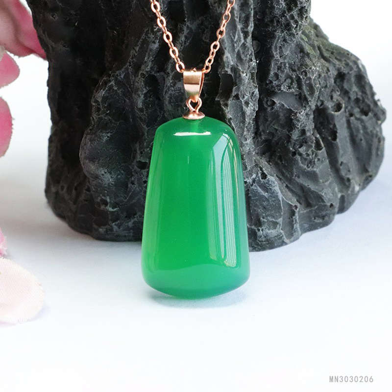 Плюшевые S925 серебро инкрустированный Зеленый Агат Кулон халцедон независимо от карты ожерелье оптовая продажа с фабрики mn30303030206