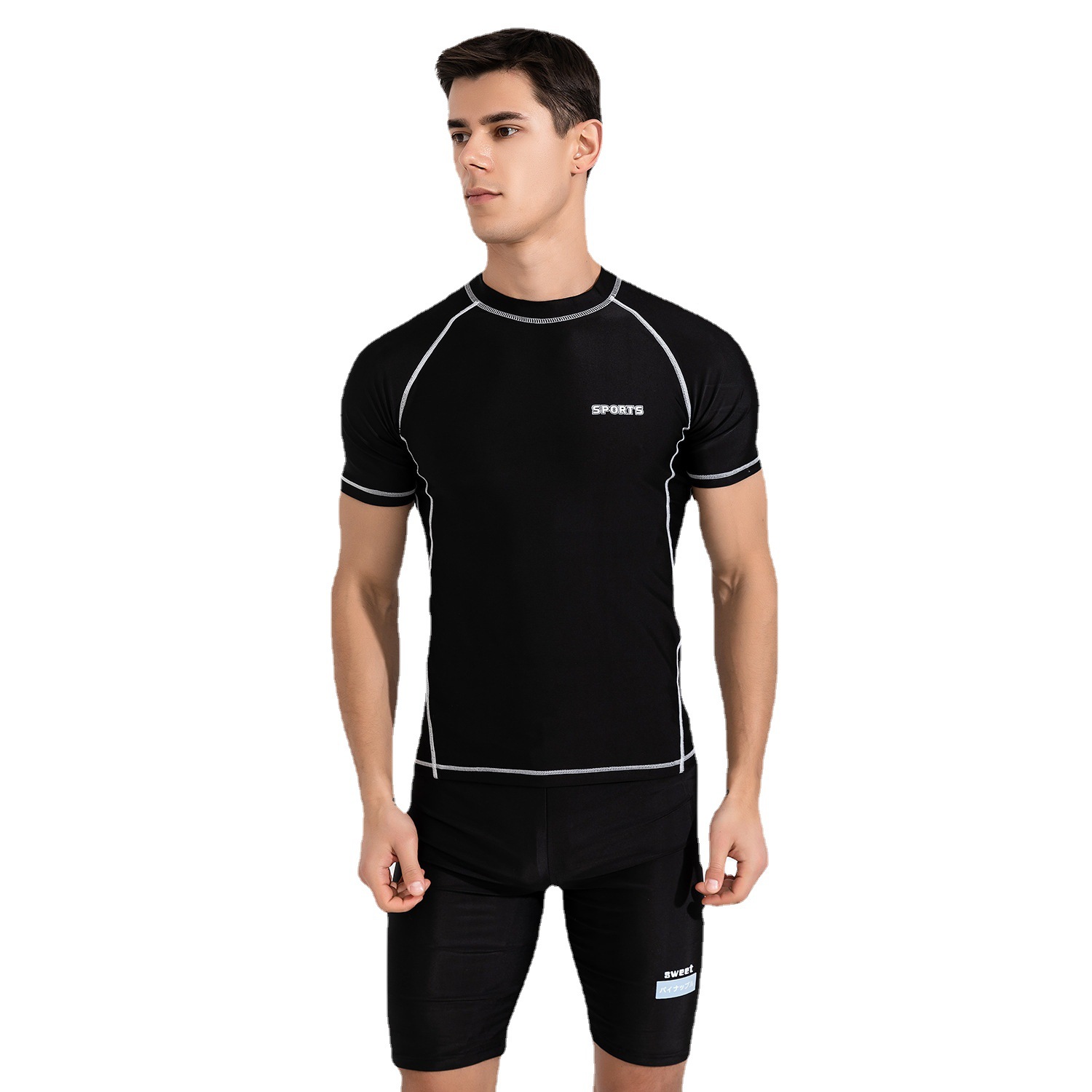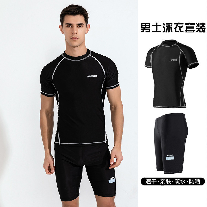 Factory Direct Мужской купальный костюм Купальники с короткими рукавами Быстросохнущий Топ Половина брюк Профессиональные мужские купальники Лето