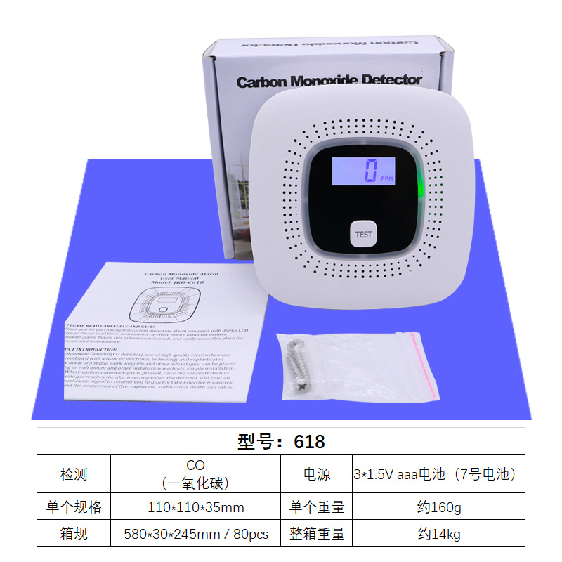 Детектор угарного газа для экспорта, бытового использования, оптовая продажа газоанализаторов CO для улицы на Amazon, умная интеллектуальная сигнализация.