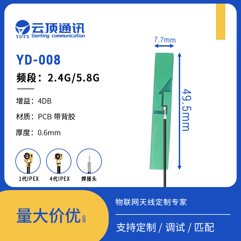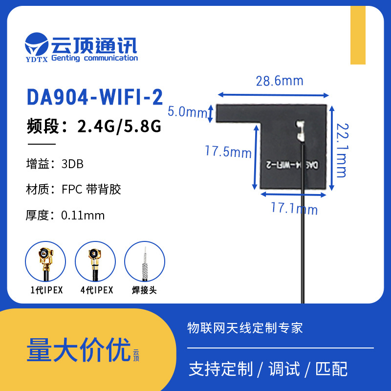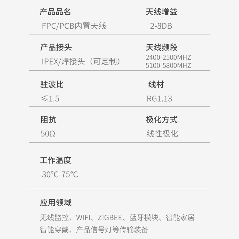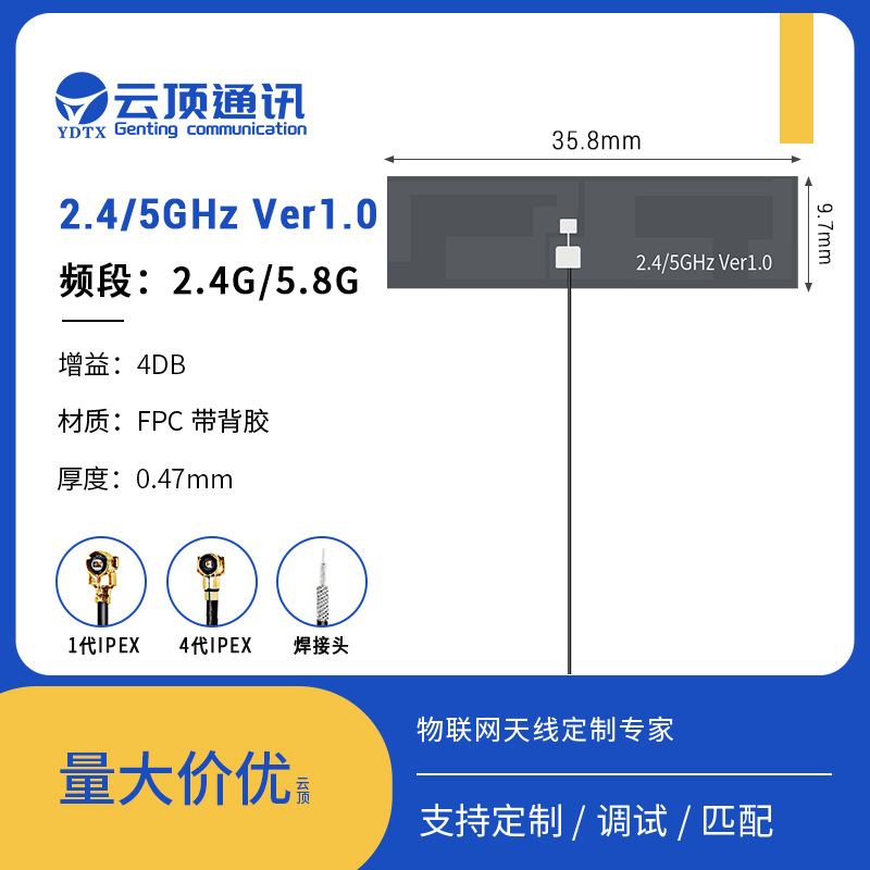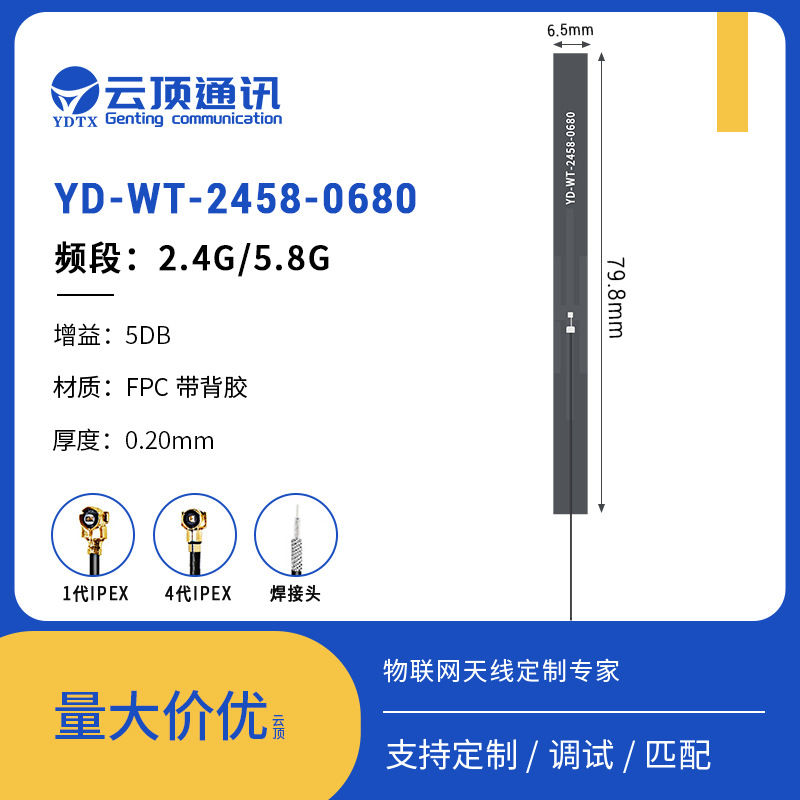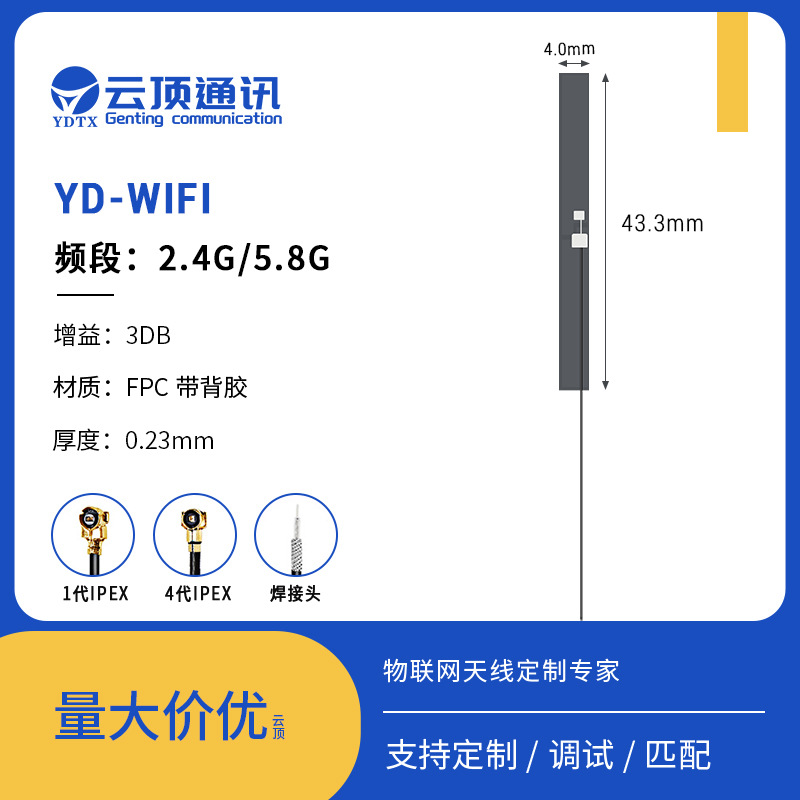 Производители всенаправленных встроенных антенн Wi-Fi для печатных плат оптом поставляют гибкую антенну FPC с высоким коэффициентом усиления 2,4/5,8 г