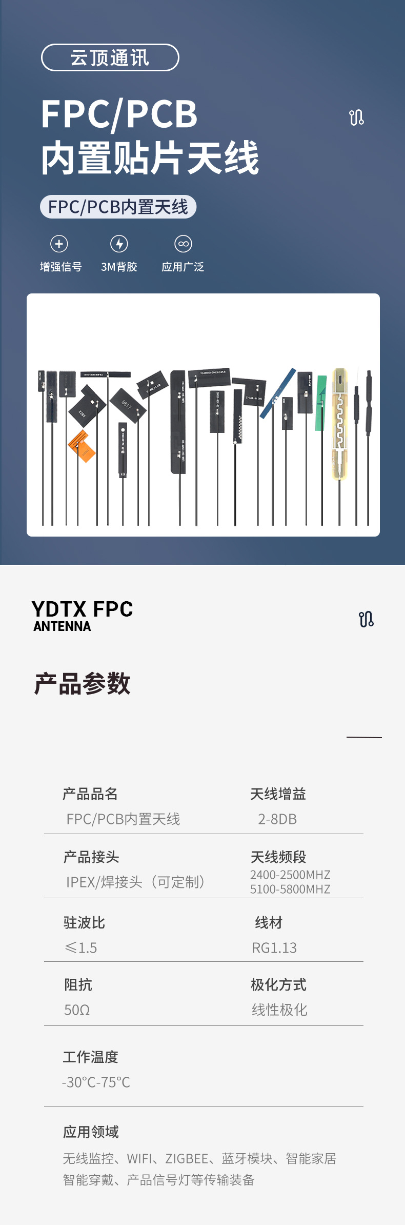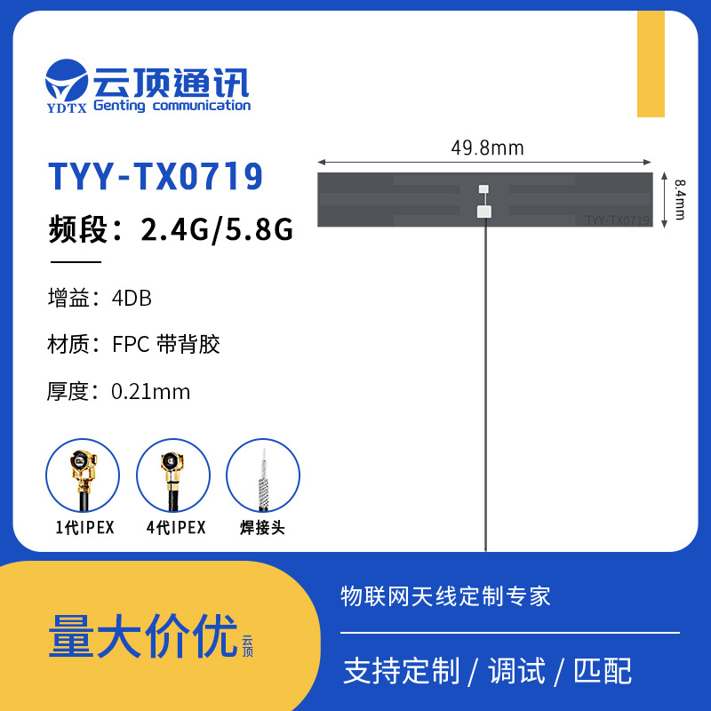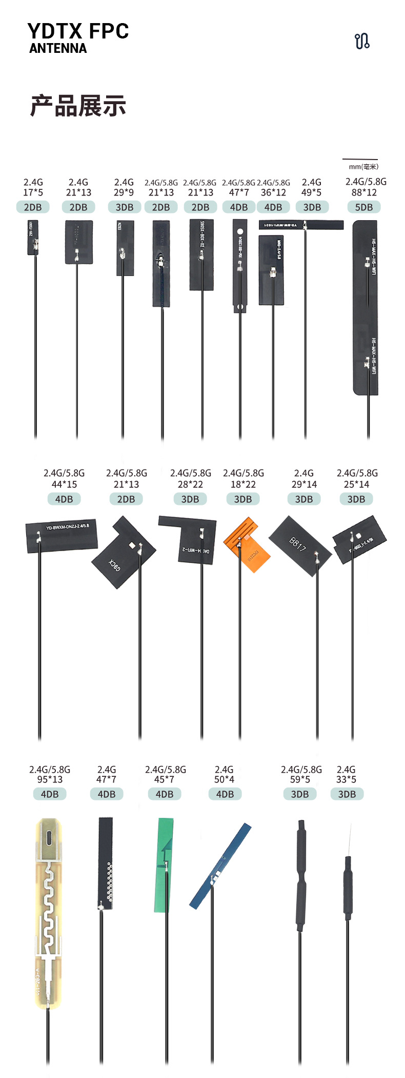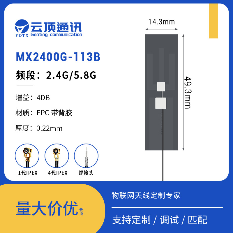 Производители всенаправленных встроенных антенн Wi-Fi для печатных плат оптом поставляют гибкую антенну FPC с высоким коэффициентом усиления 2,4/5,8 г