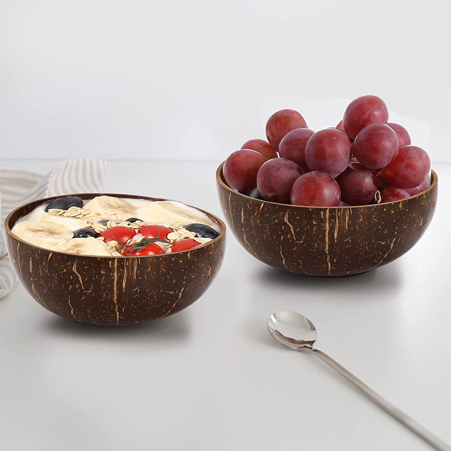 注:椰壳碗可配椰子丝垫圈,可以平稳放置在桌面上。