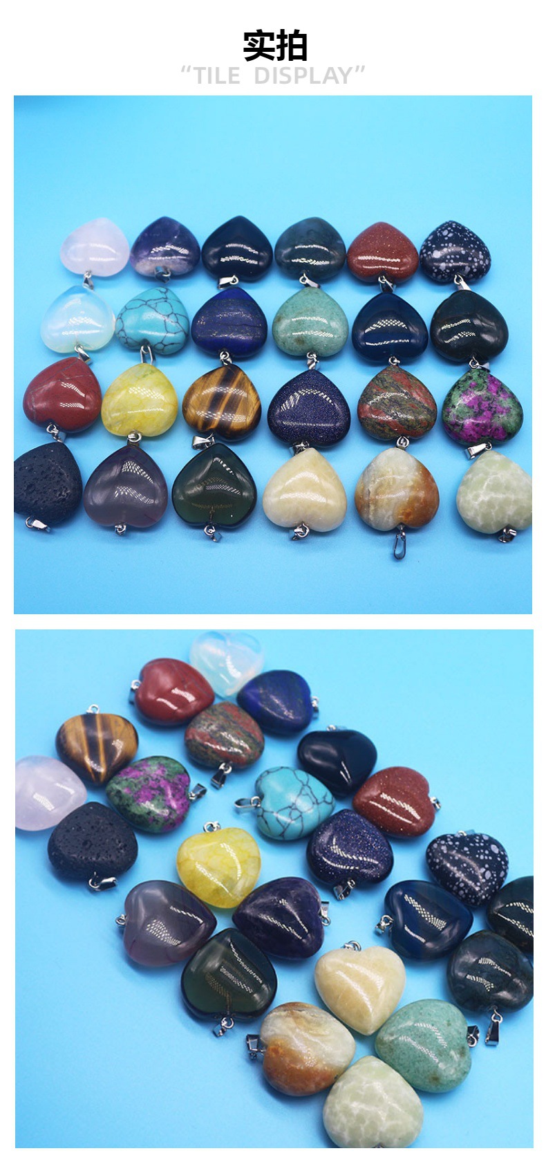 Белый кристалл; Арбуз красный; Аметист; Цитрин; Опал; Редстоун; "Тигровый глаз"; Красное и зеленое сокровище; Флорит; Ляпис; Пески; Ланьша; Обсидиан; Бирюзовый; Вулканический камень; Цветок бирюзовый; Топаз; Зеленый нефрит; Синий Агат; Фиолетовый Агат; Индийский Агат [темно-зеленый]; Индийский Агат [салатовый]; Индийский Агат [Желтый]; Черное стекло; Замок Пик Джейд