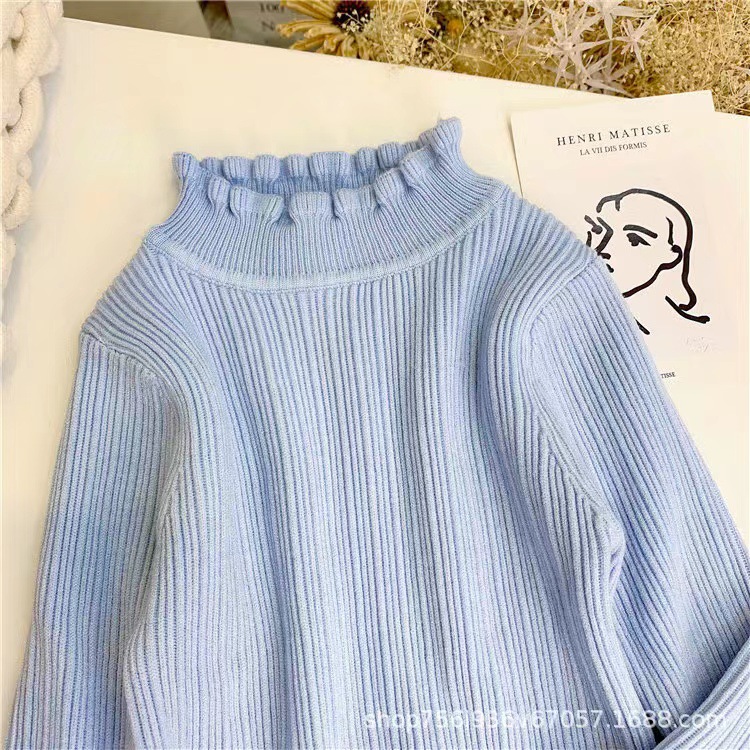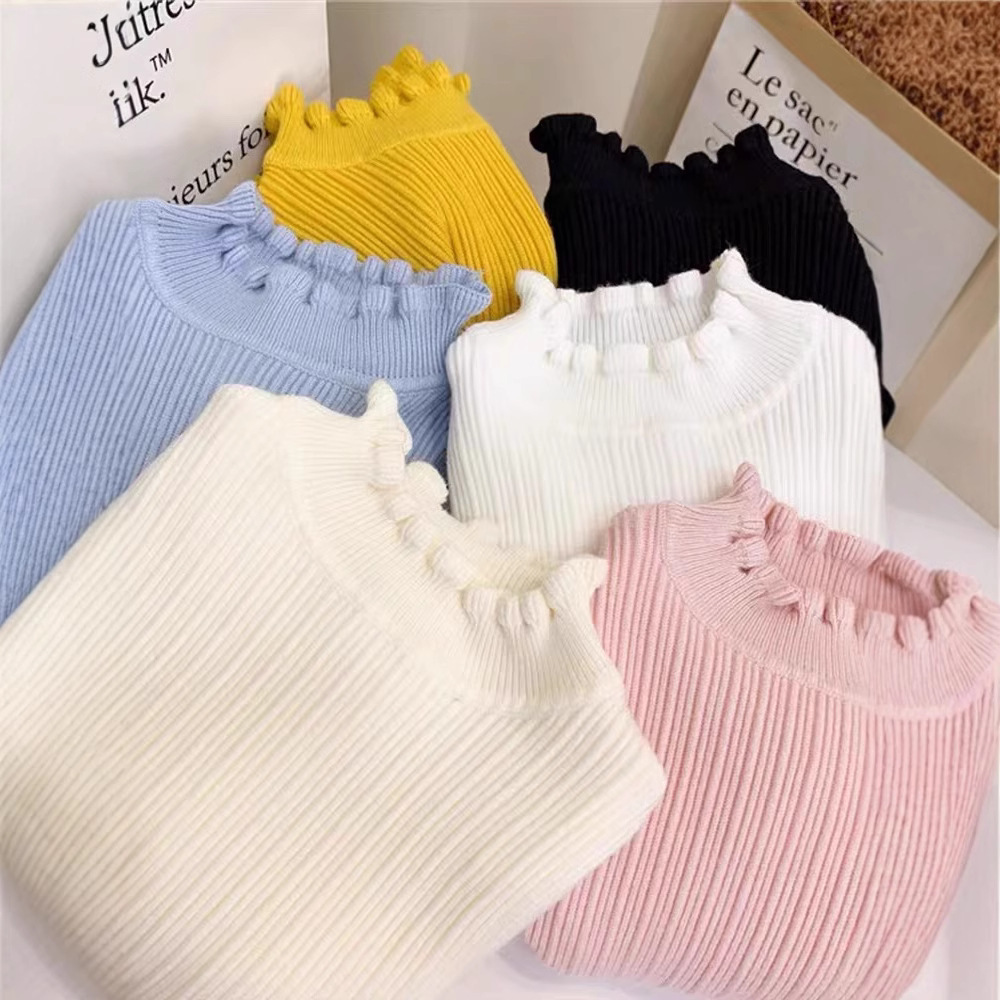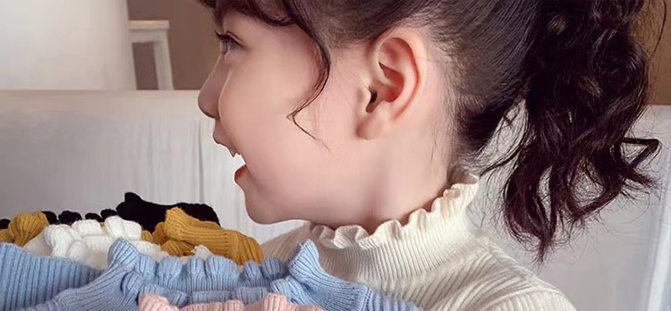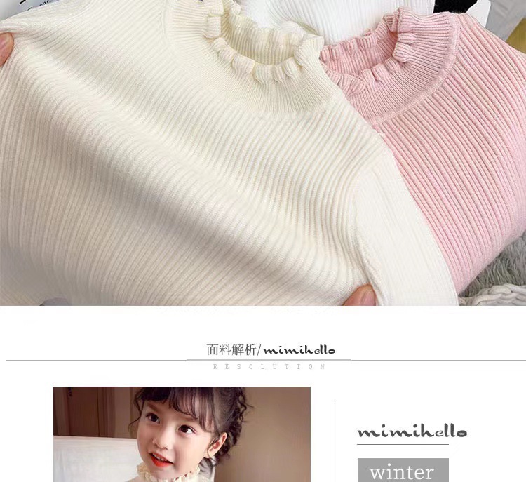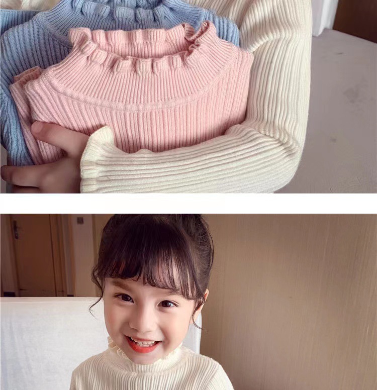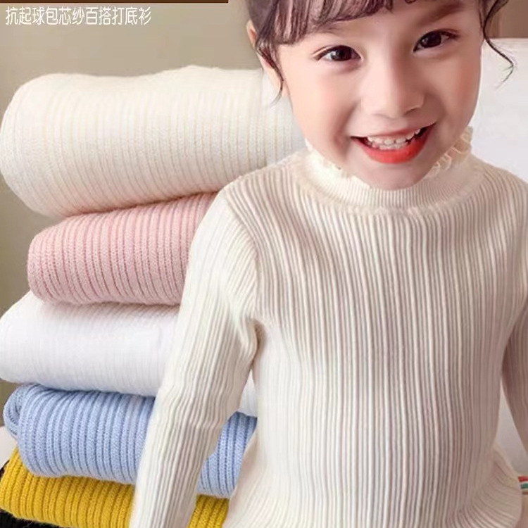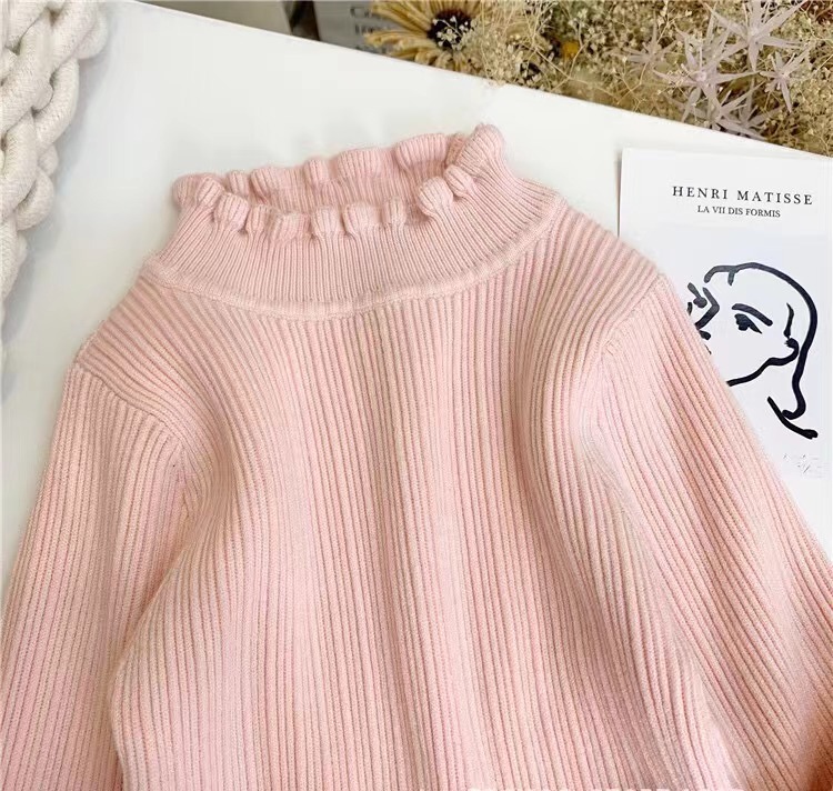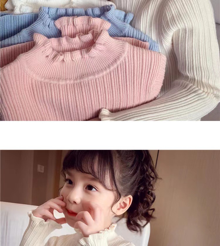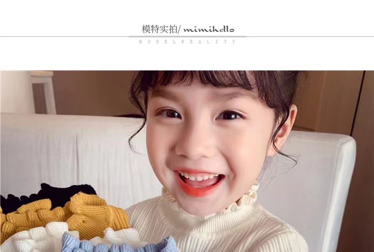 Свитер для девочек, пуловер, осенне-зимний вязаный свитер с деревянными ушками, Базовая рубашка в западном стиле в Корейском стиле, шерстяной детский топ с высоким воротником