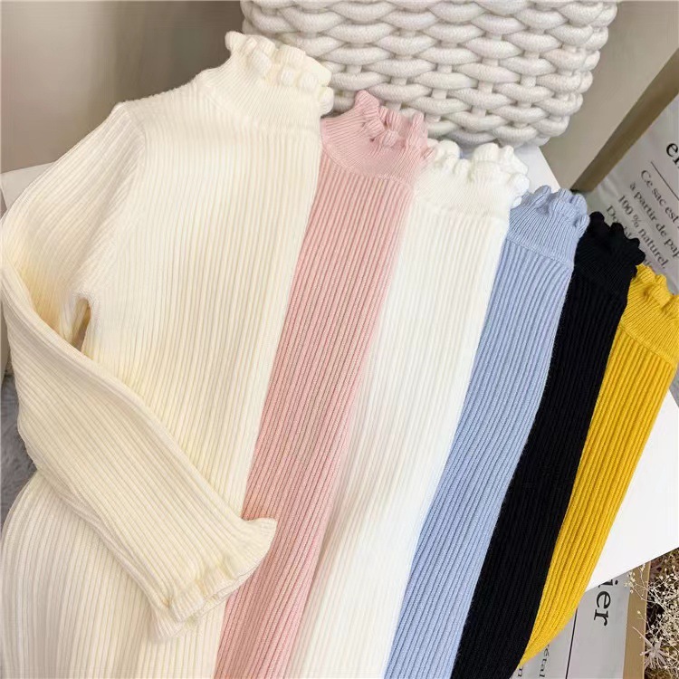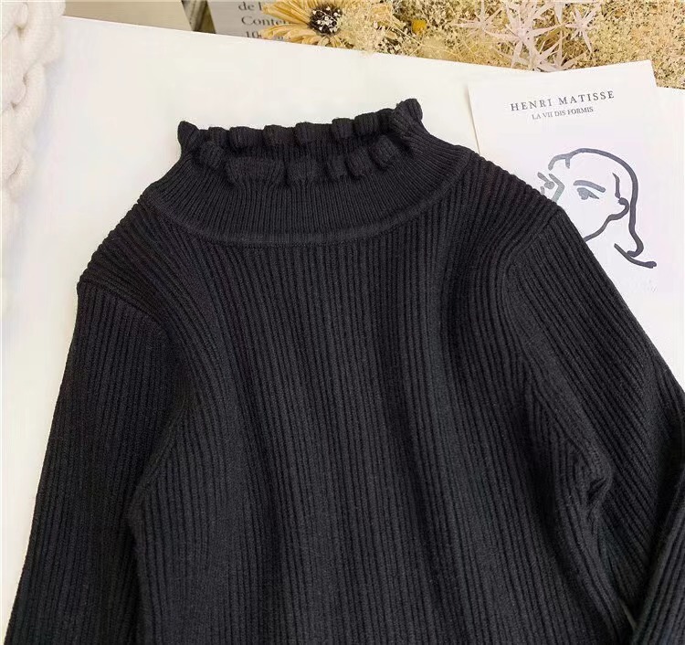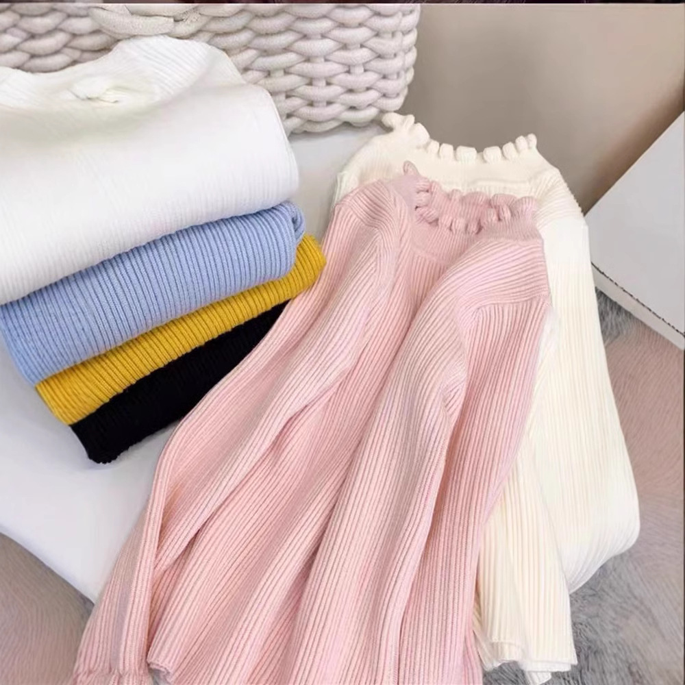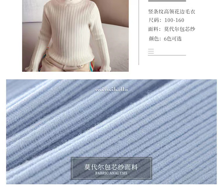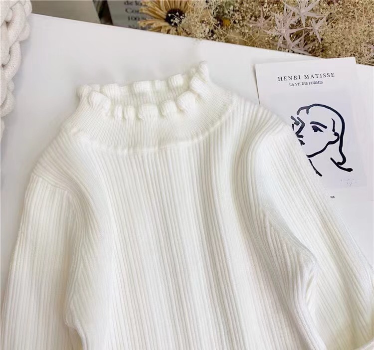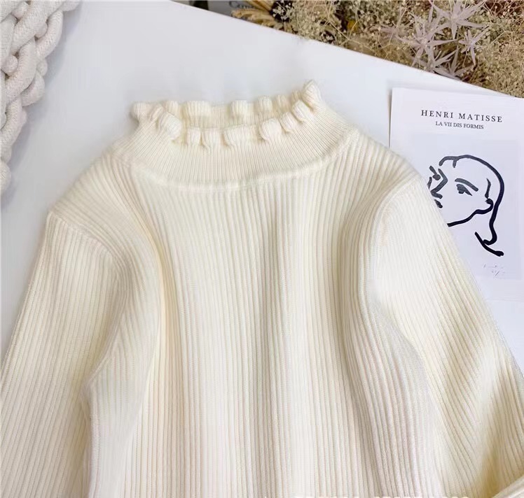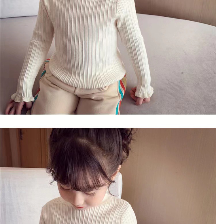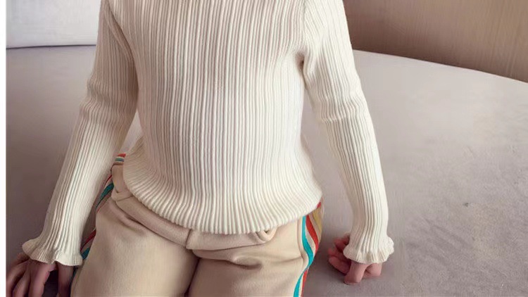 Свитер для девочек, пуловер, осенне-зимний вязаный свитер с деревянными ушками, Базовая рубашка в западном стиле в Корейском стиле, шерстяной детский топ с высоким воротником