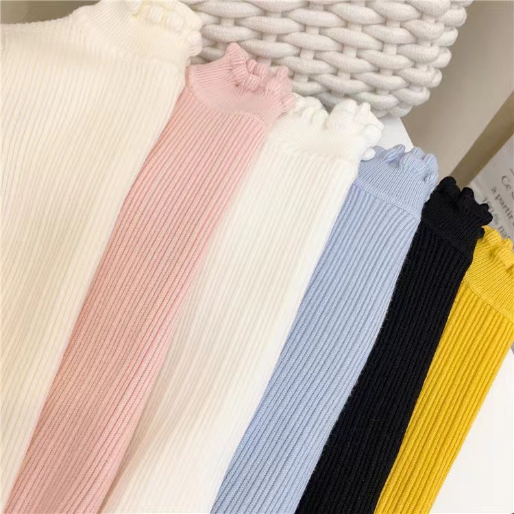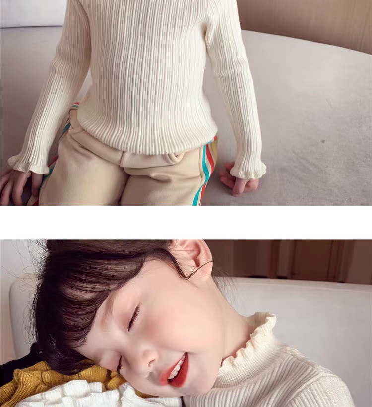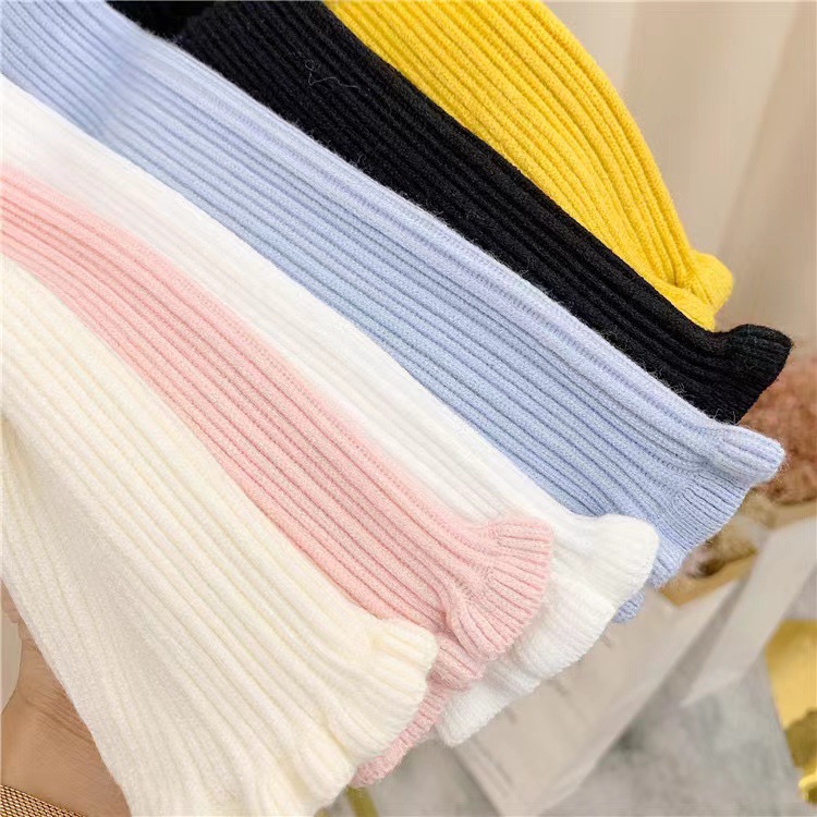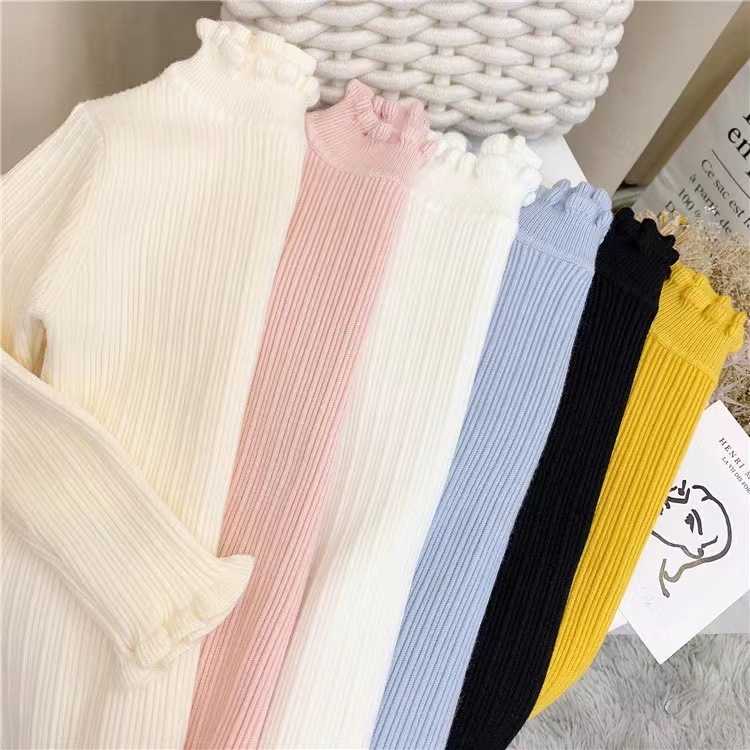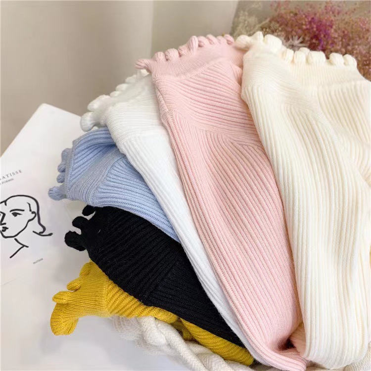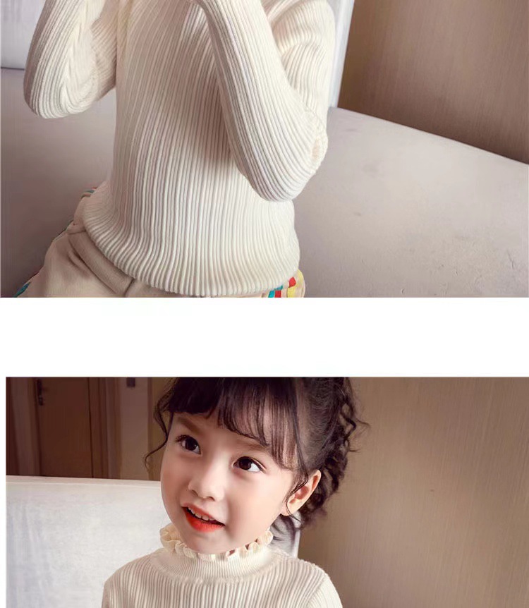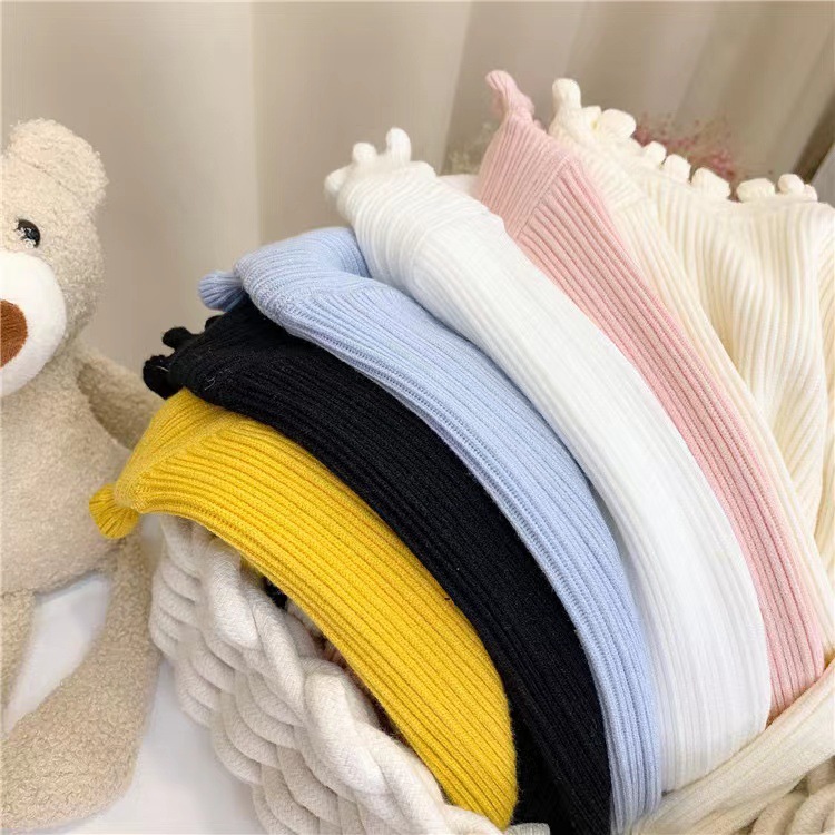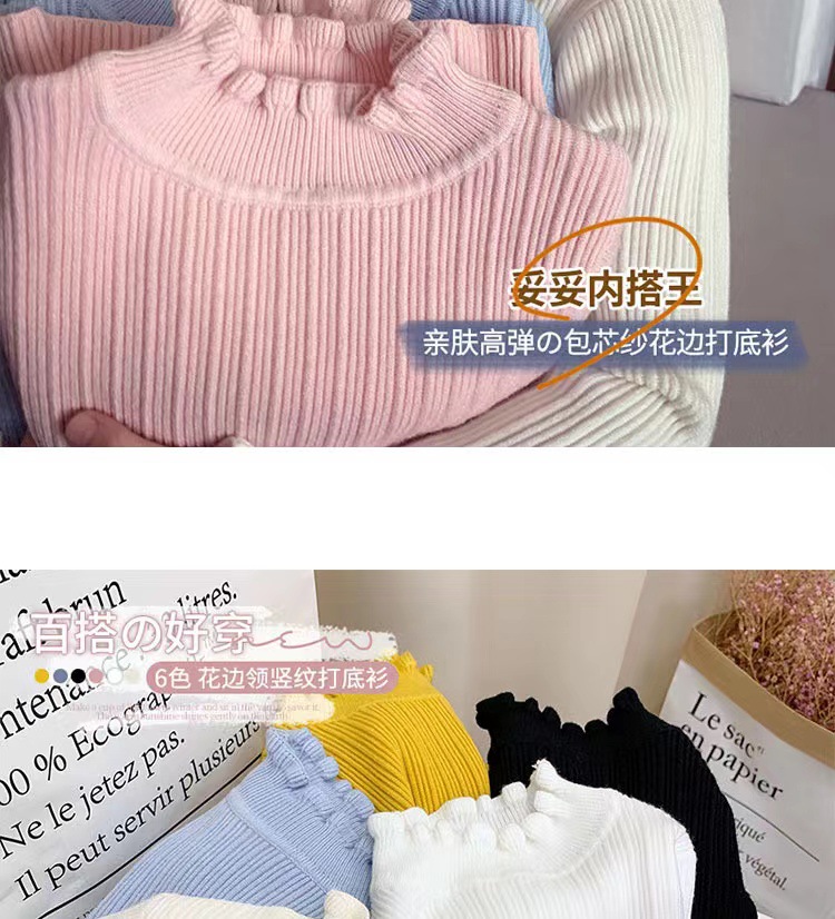 Свитер для девочек, пуловер, осенне-зимний вязаный свитер с деревянными ушками, Базовая рубашка в западном стиле в Корейском стиле, шерстяной детский топ с высоким воротником