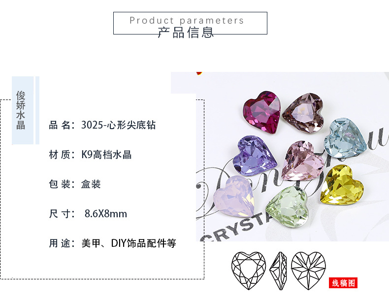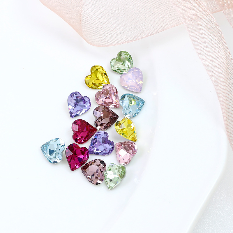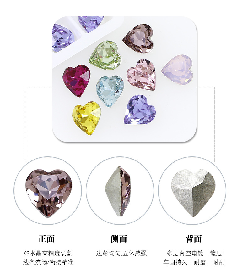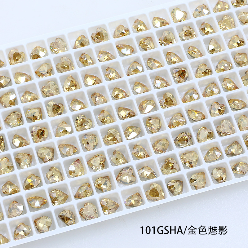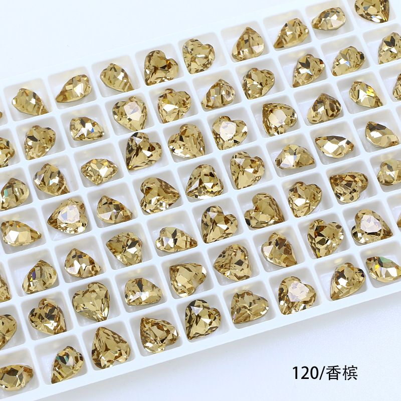 Dongzhou Crystal Peach Heart маникюрный бриллиант K9 вспыхивает любовь шампанское золотое сердце в форме острого дна ювелирные аксессуары DIY оптом
