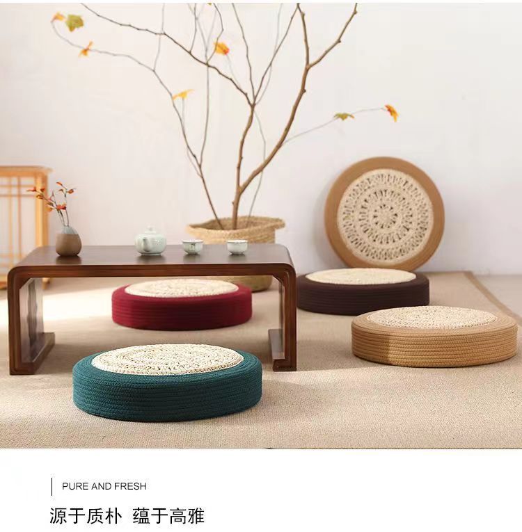 Японский татами футон Подушка для медитации коврик для поклонения Будде коврик на коленях Домашний напольный коврик соломенный тканый