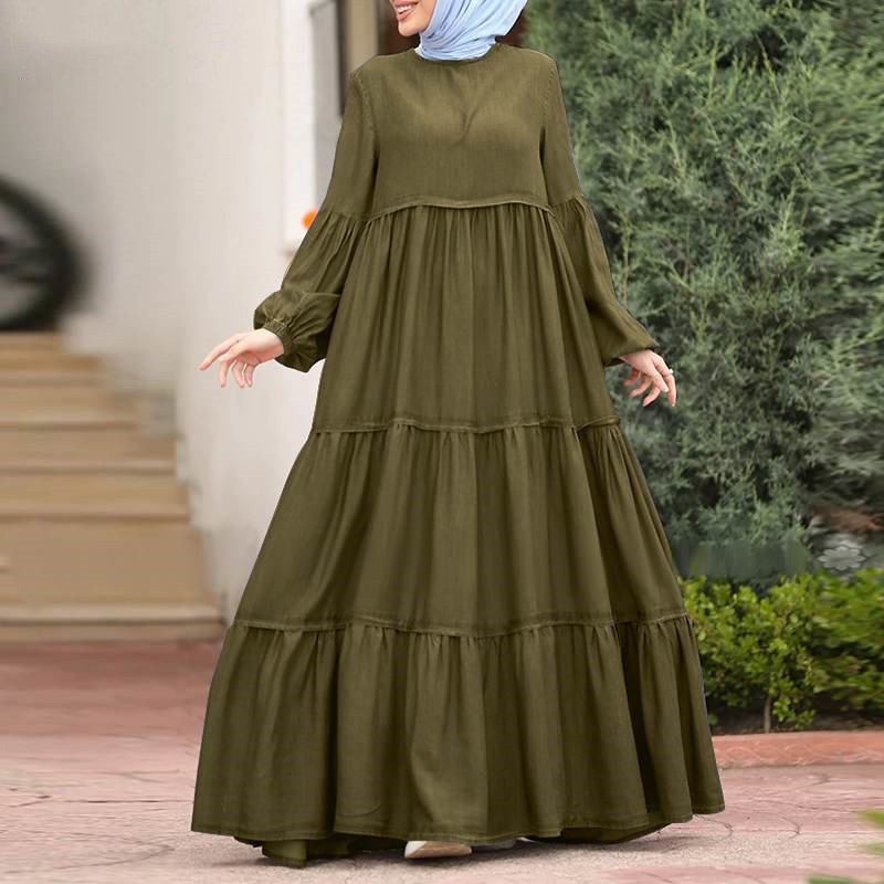 Осенняя мусульманская юбка в виде листьев лотоса, женское платье, корейское платье с рюшами, повседневное Свободное длинное платье с круглым вырезом