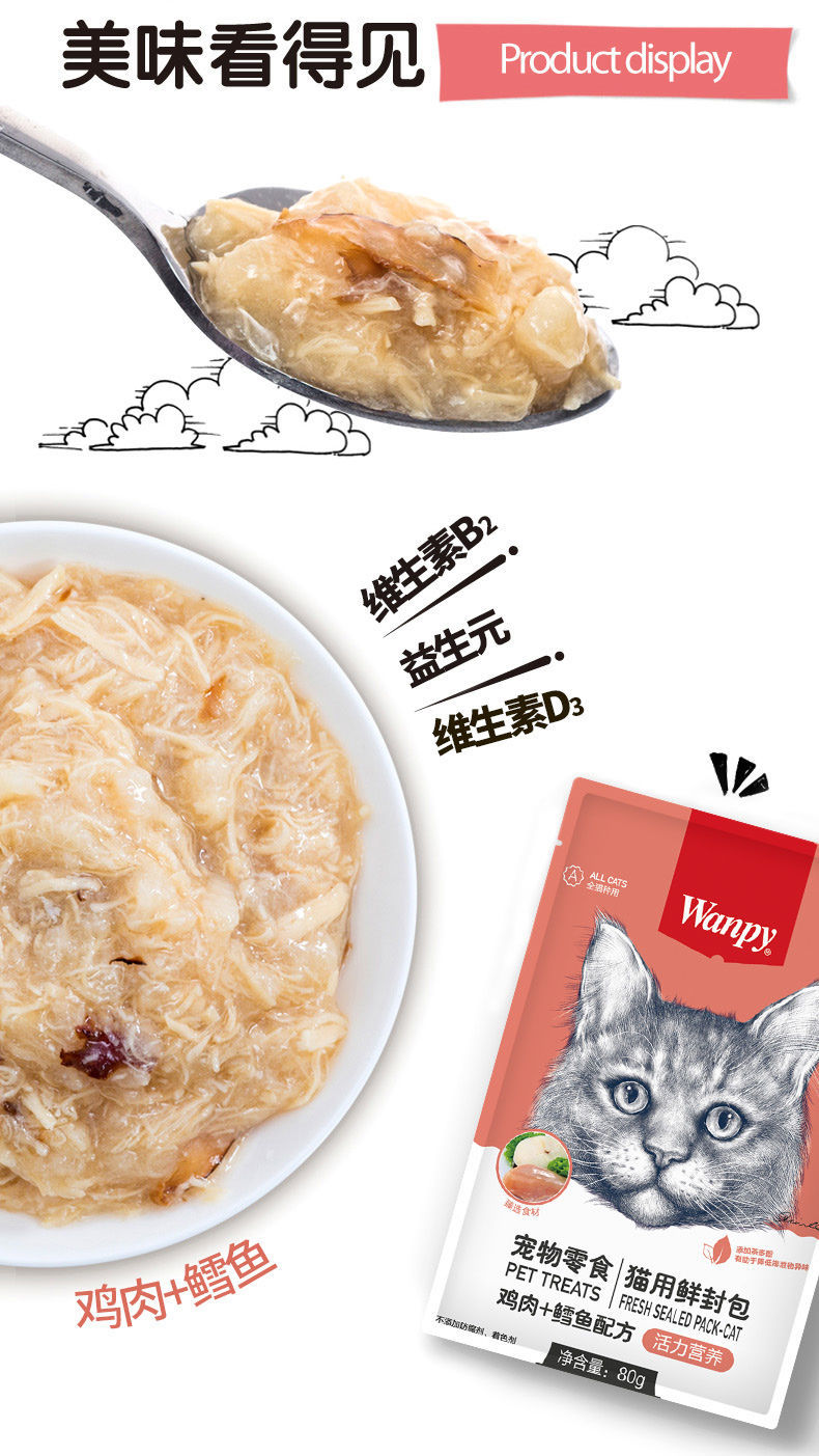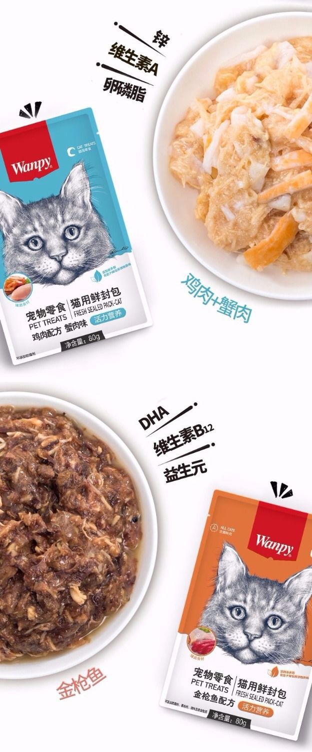 Wanpy Naughty Fresh Упакованные в полоски для кошек Влажная еда Питание Откорм Закуски для кошек и собак Свежие для собак Упакованные для собак и кошек