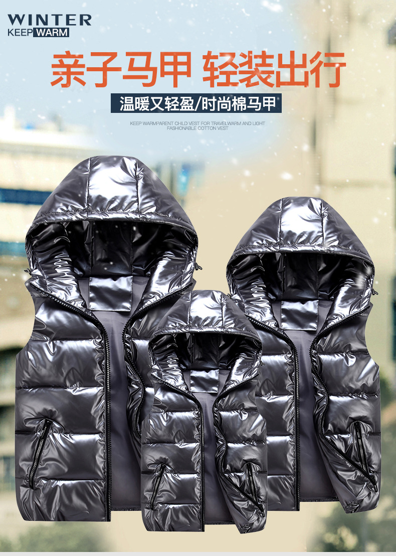 Осенне-зимний хлопковый жилет для родителей и детей с ярким лицом и воротником-стойкой, мужской модный бренд, мягкий Приталенный жилет с капюшоном, хлопковый жилет для пар, партия