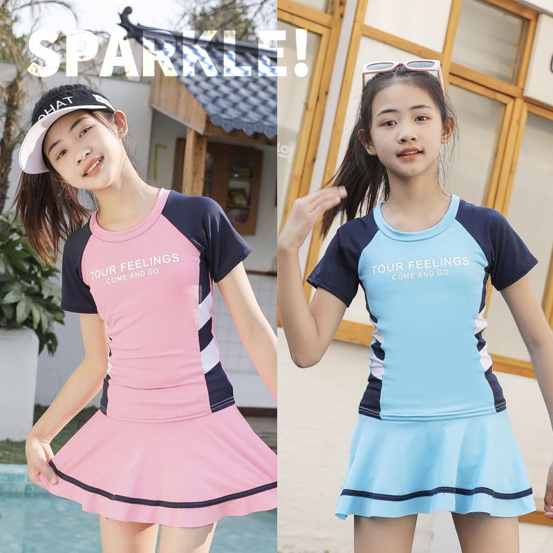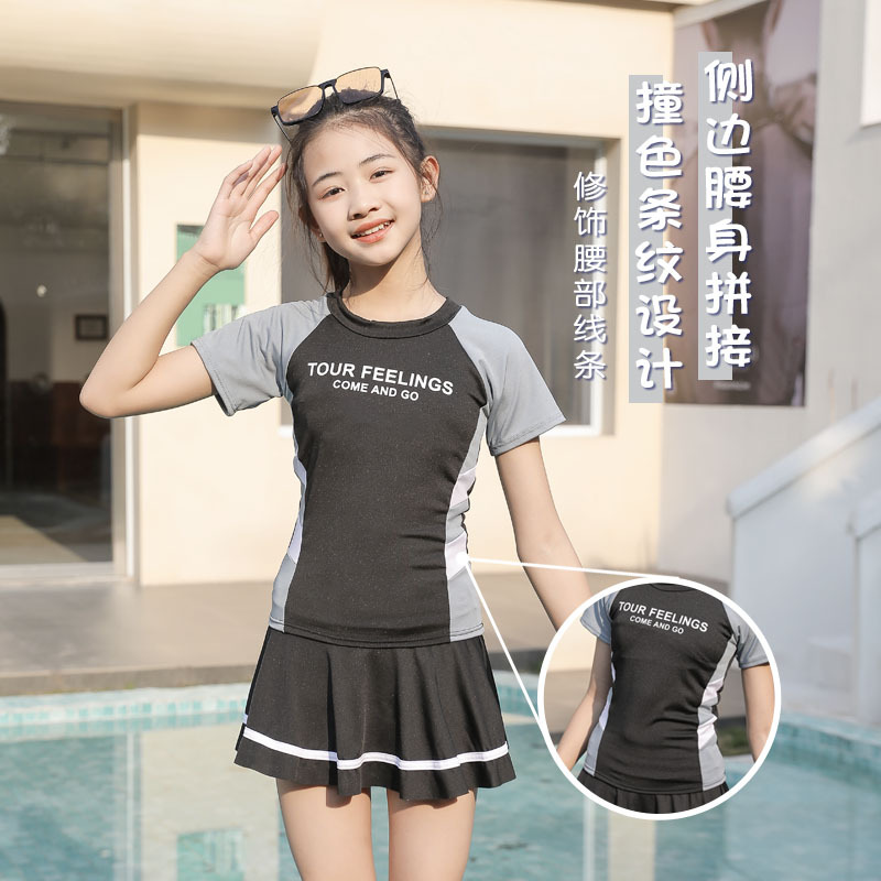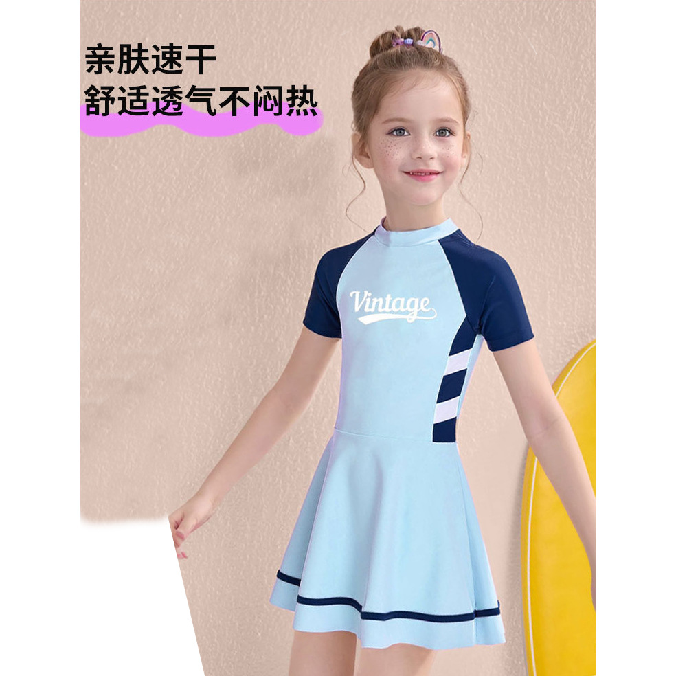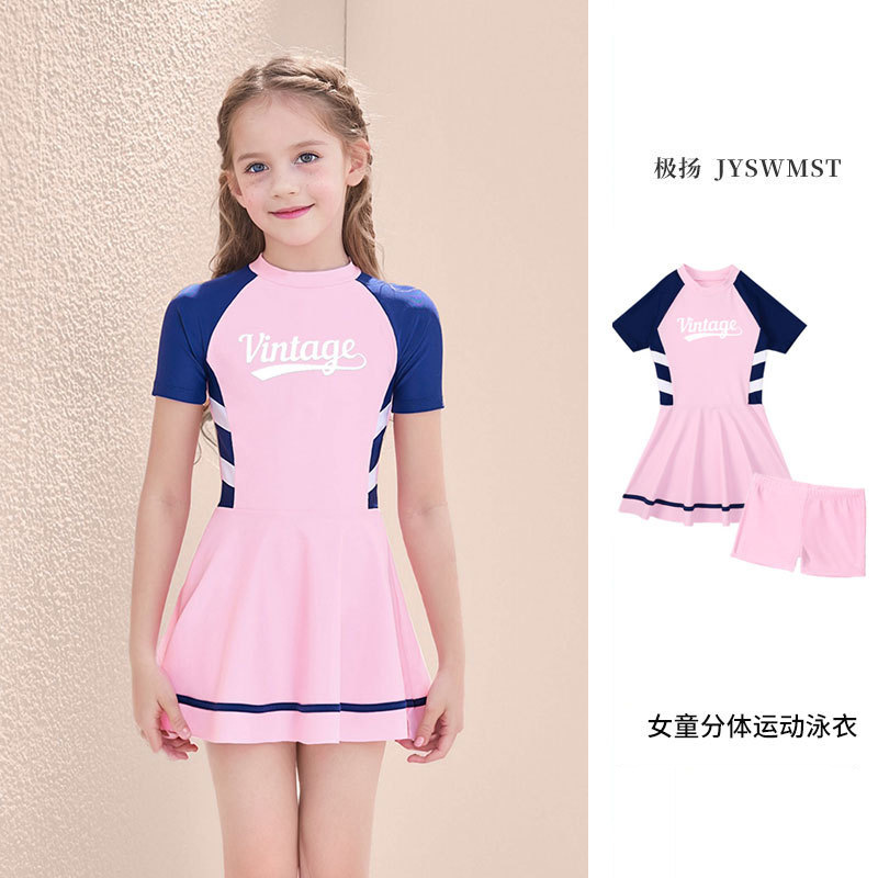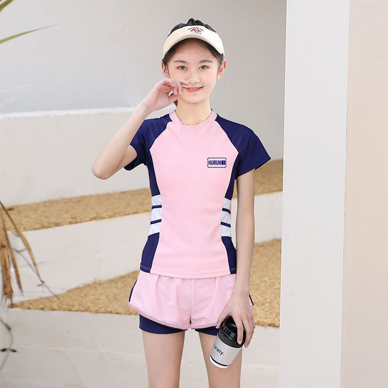 Купальник для девочек Спортивный шить с коротким рукавом для защиты от солнца Купальник для детей среднего и большого размера с нагрудной подкладкой Детский Быстросохнущий студенческий купальник