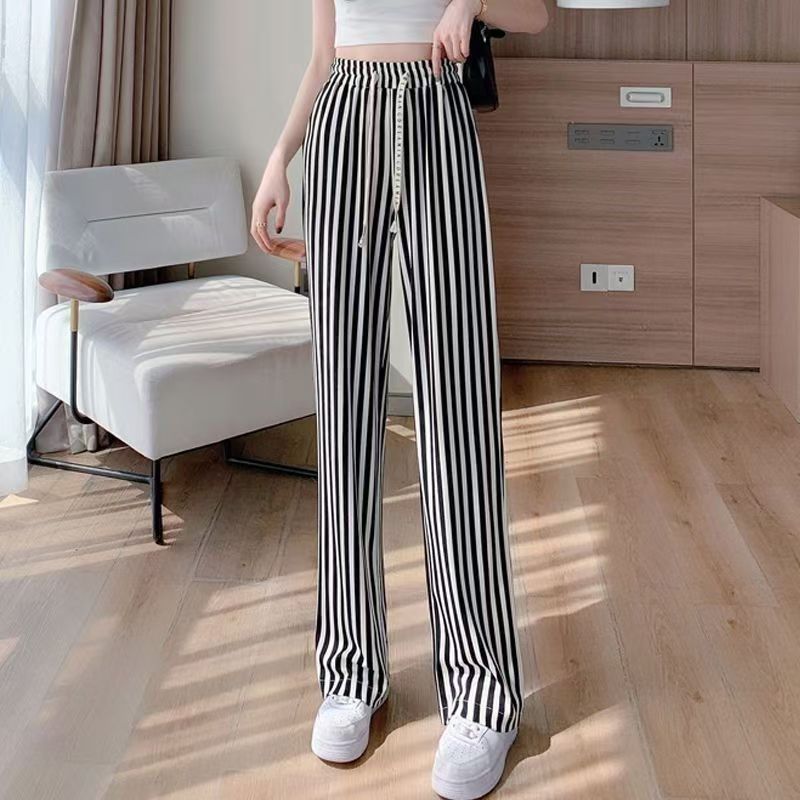 Черно-белые полосатые широкие брюки женские весна и лето 2025 прямые свободные тонкие повседневные брюки дикие брюки с принтом зебры