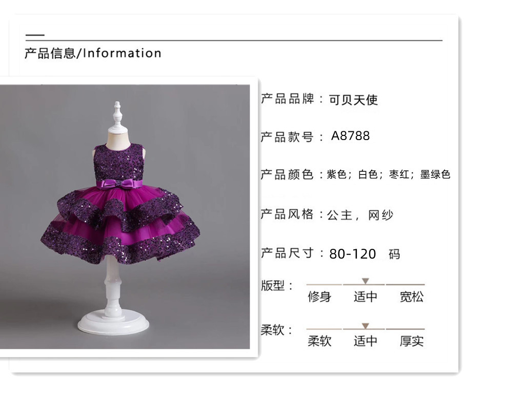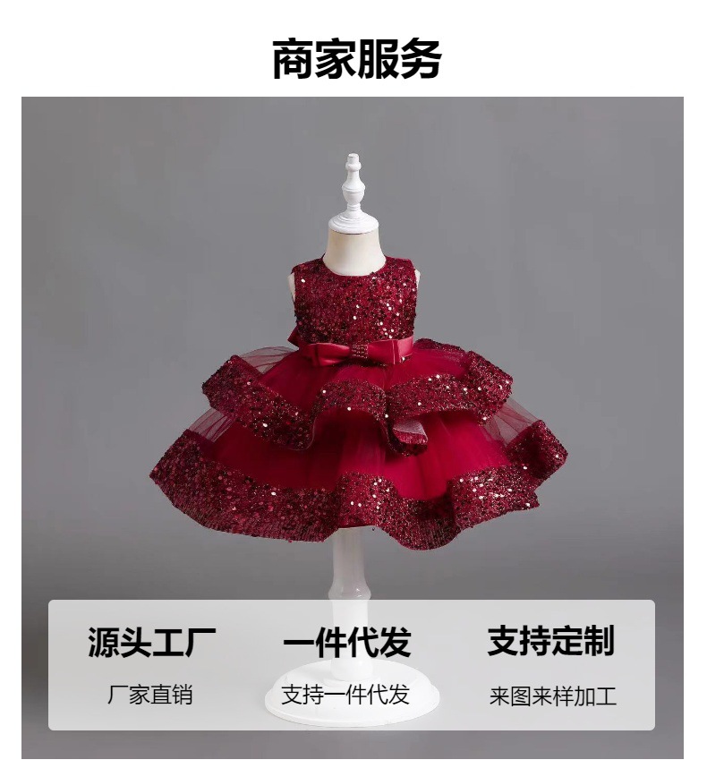 Трансграничное детское летнее детское платье Принцесса юбка с блестками Детское детское платье высокого класса День рождения банкетный платье