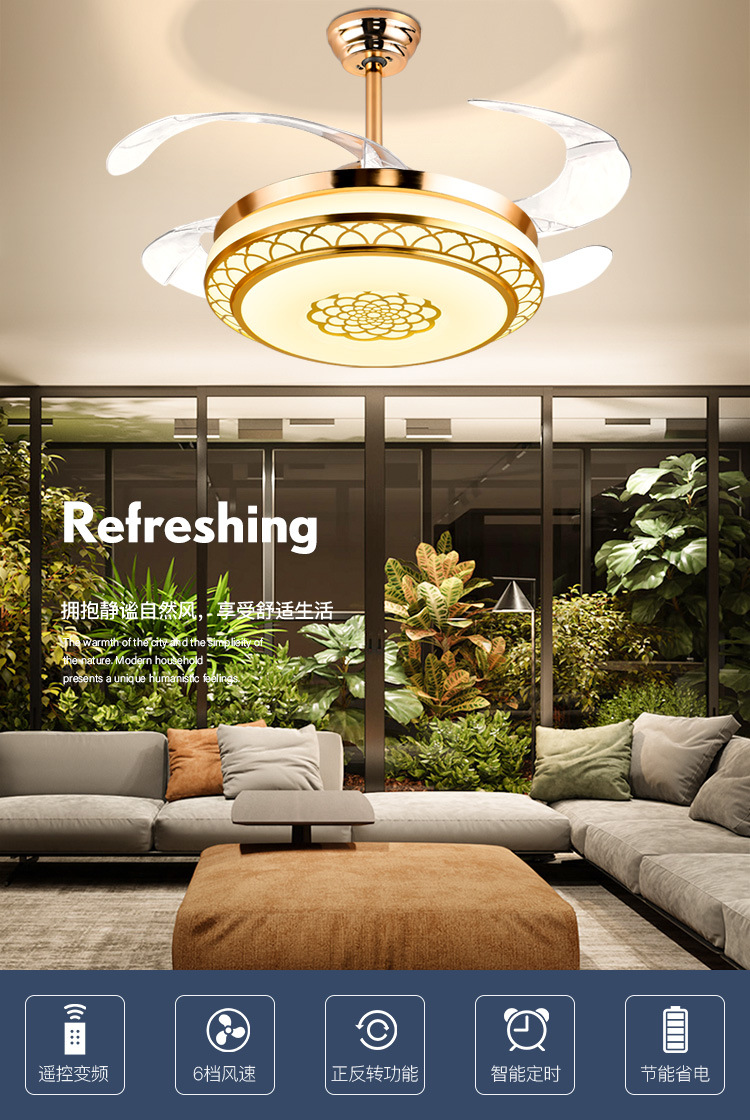 Невидимый вентилятор-светильник с интеллектуальным управлением для гостиной и спальни, потолочный вентилятор-светильник с мощным потоком воздуха, бытовой инверторный вентилятор со встроенной люстрой