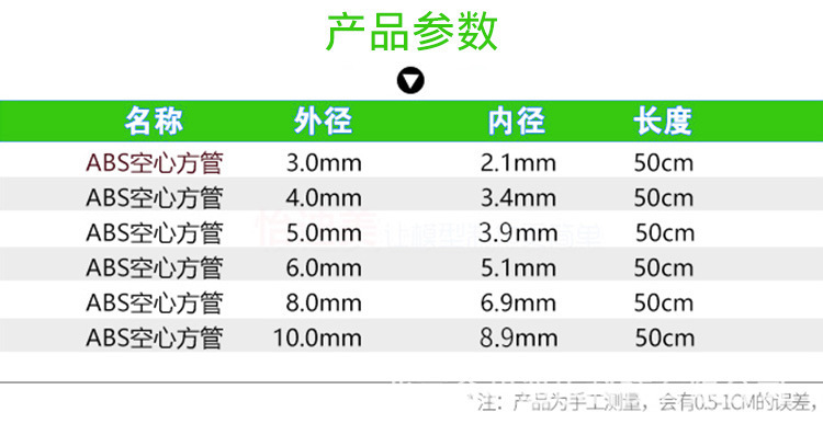 Квадратная трубка из АБС-пластика, модель песочного стола, пластиковая пластиковая трубка, твердый полый стержень, модификация модели, стержень, сделай сам, ручная работа