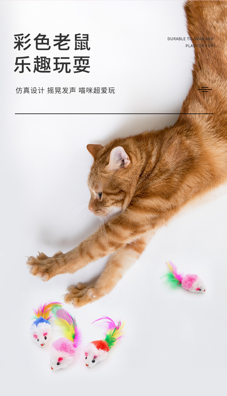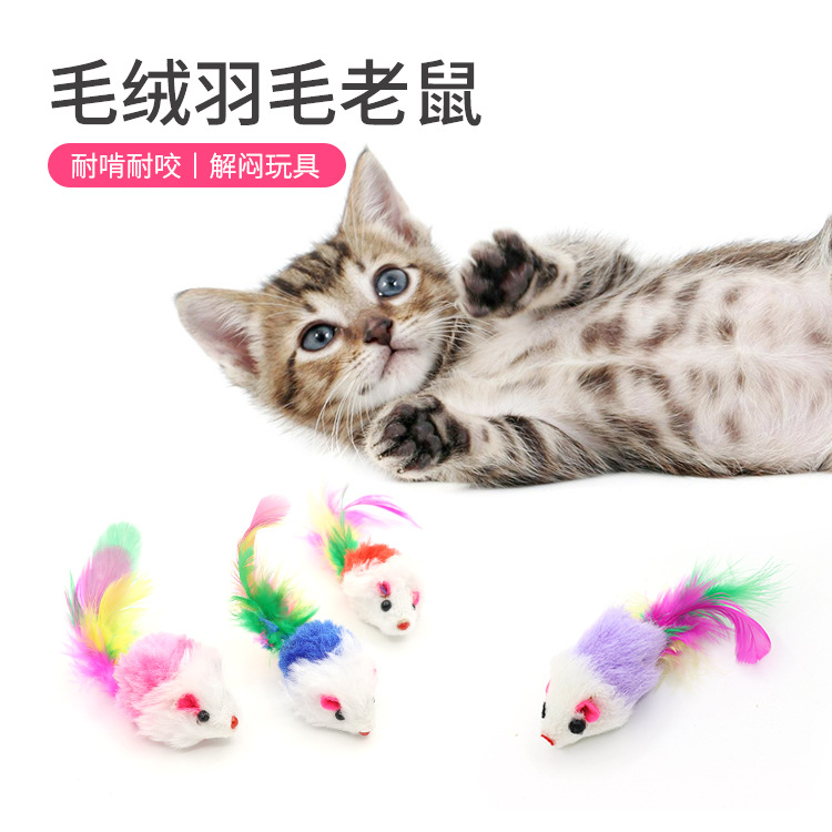 Товары для домашних животных оптом цвет перо хвост маленькая мышь кошка игрушка Реалистичная плюшевая мышь моделирование мыши